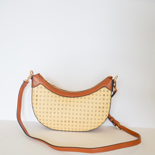 Daisy Half-Moon Rattan Crossbody