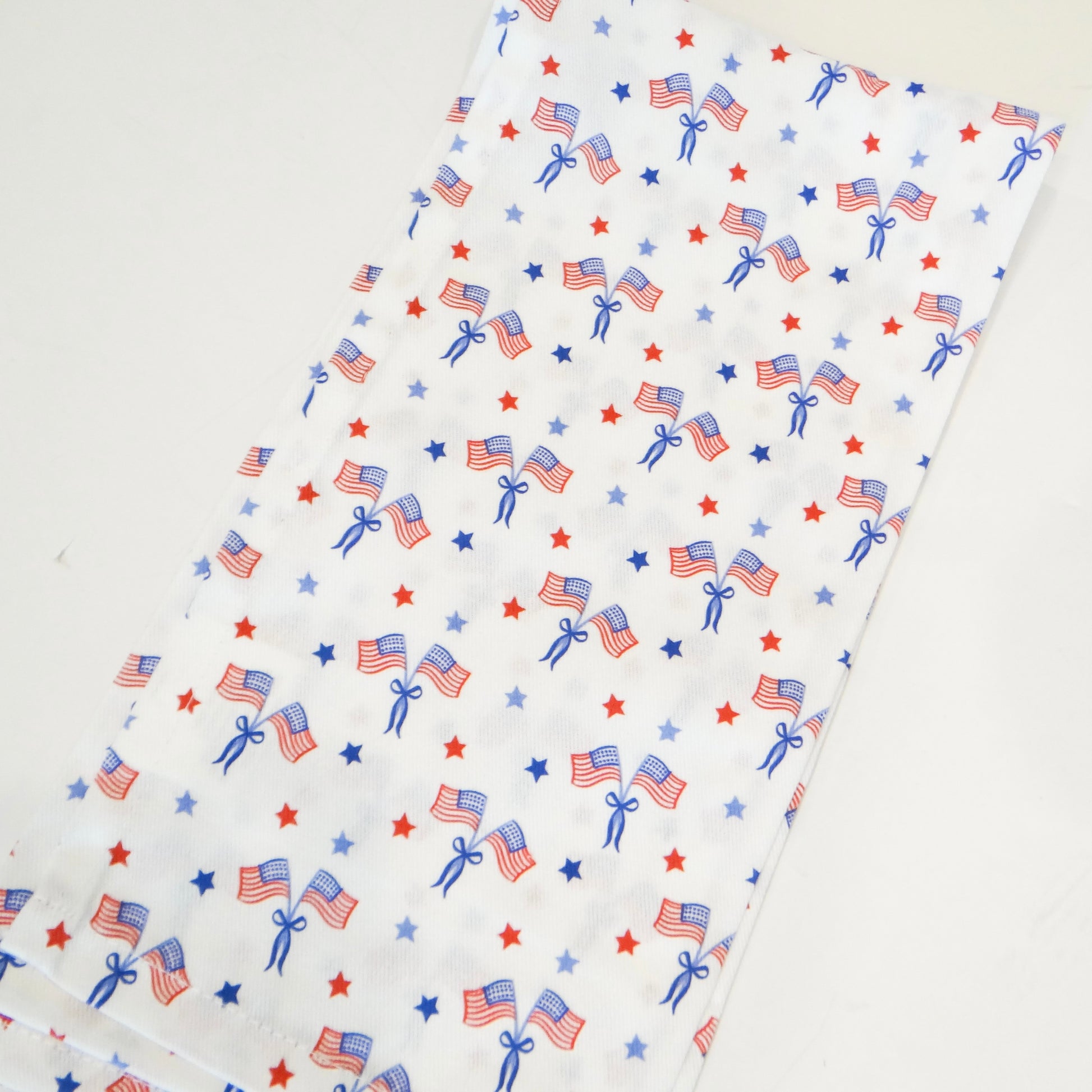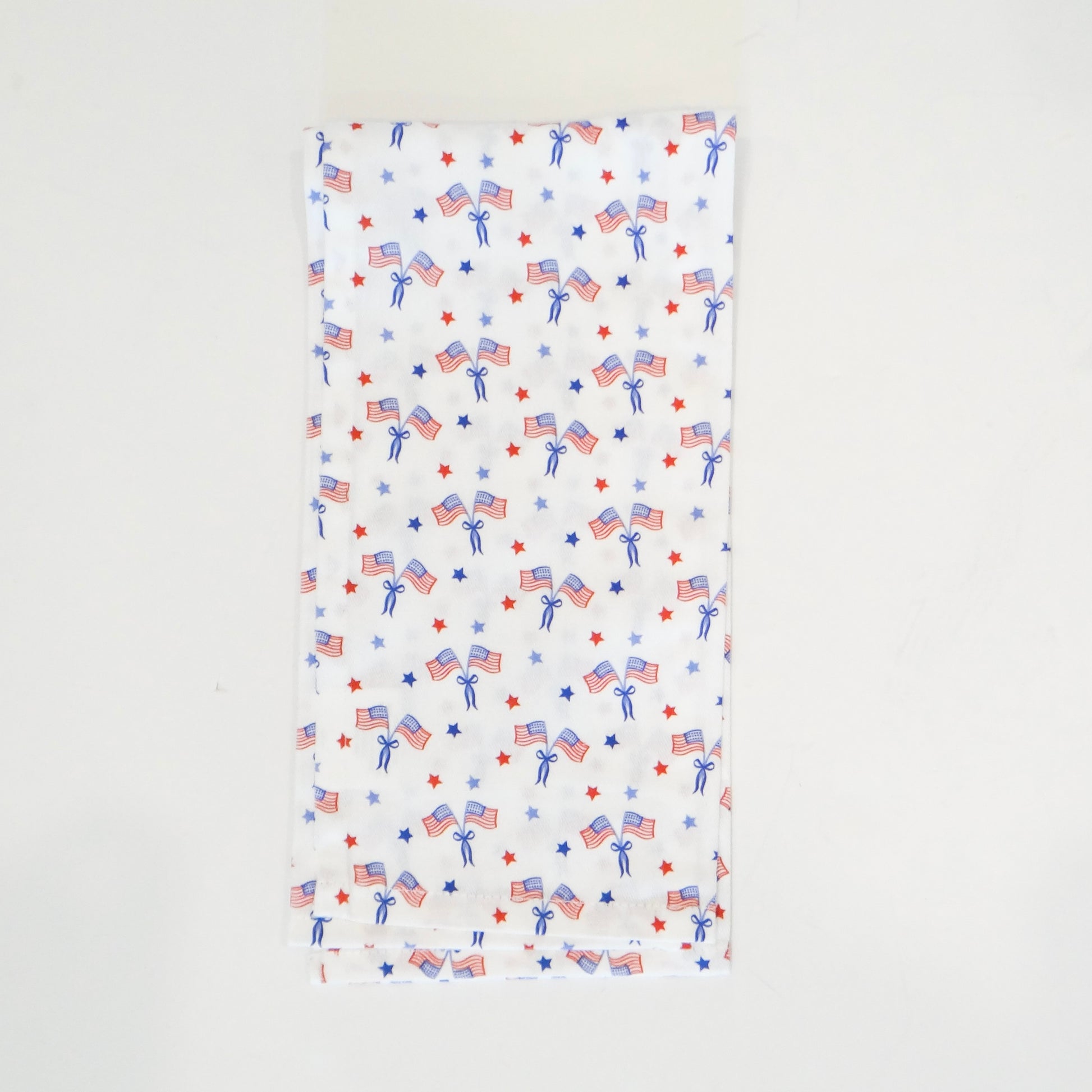 Celebrate American pride with this patriotic tea towel featuring a bold American flag print. Perfect for the 4th of July and beyond, this white cotton towel brings festive spirit to your kitchen. Ideal for drying dishes, displaying on your counter, or gifting to fellow patriots. A timeless addition to any home that honors the red, white, and blue.