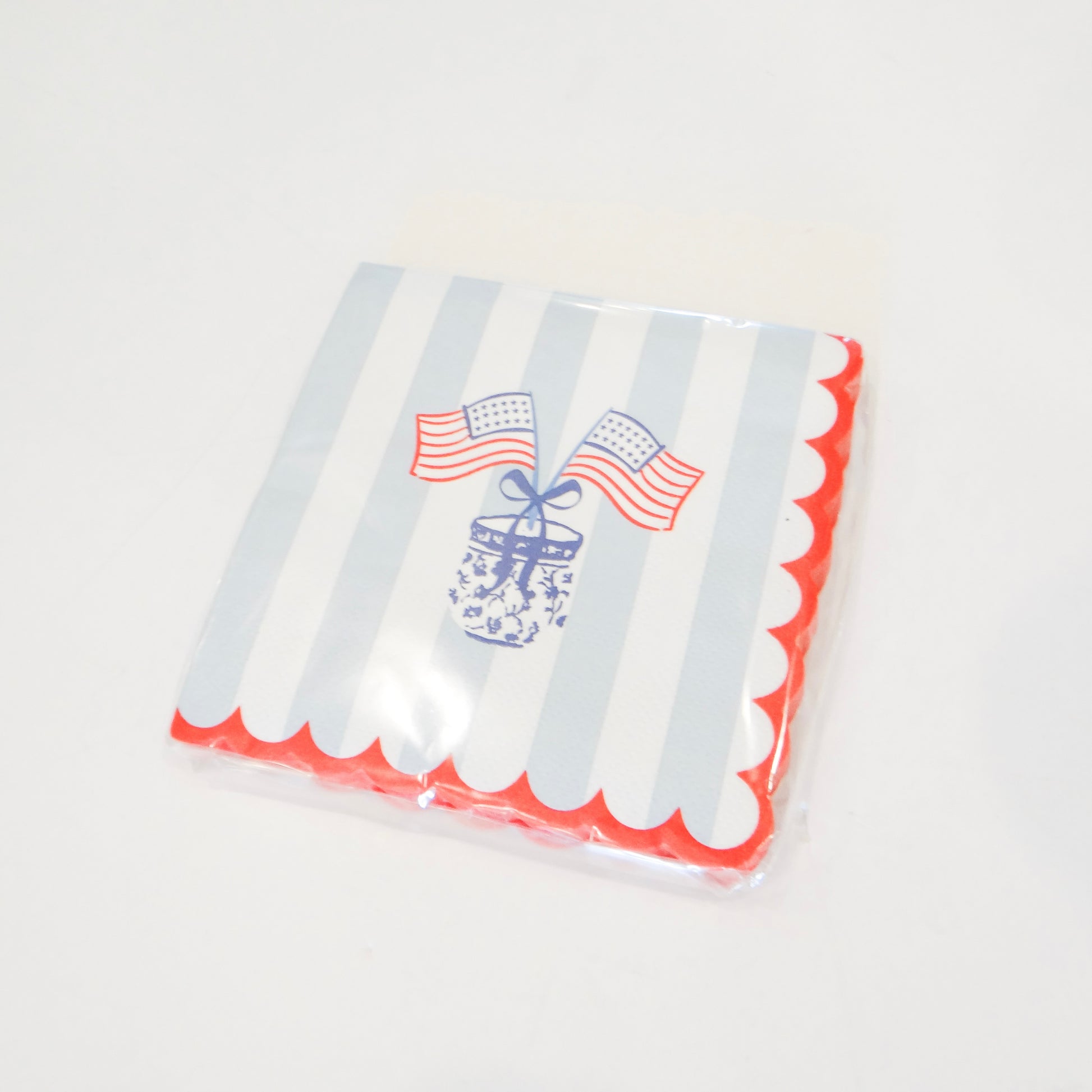 Celebrate patriotic style with these charming cocktail napkins featuring classic blue and white stripes paired with American flag accents. Perfect for Fourth of July gatherings, summer entertaining, and patriotic occasions, these napkins bring festive flair to any table setting. Each set includes 250 napkins, ideal for parties, barbecues, and holiday celebrations. The timeless red, white, and blue color palette complements both casual and elegant table décor. Display them in decorative jars for easy access and added visual appeal. A must-have for anyone who loves