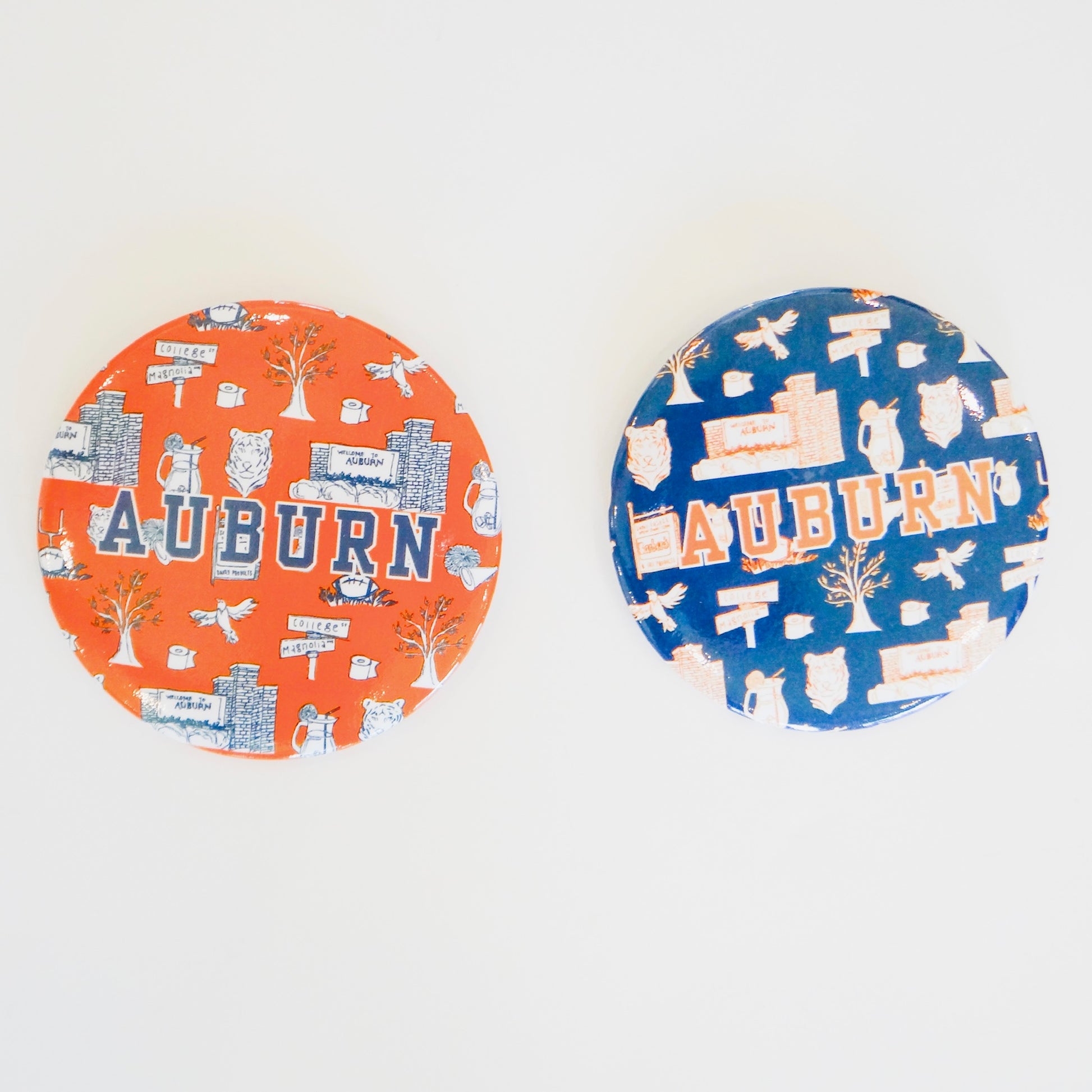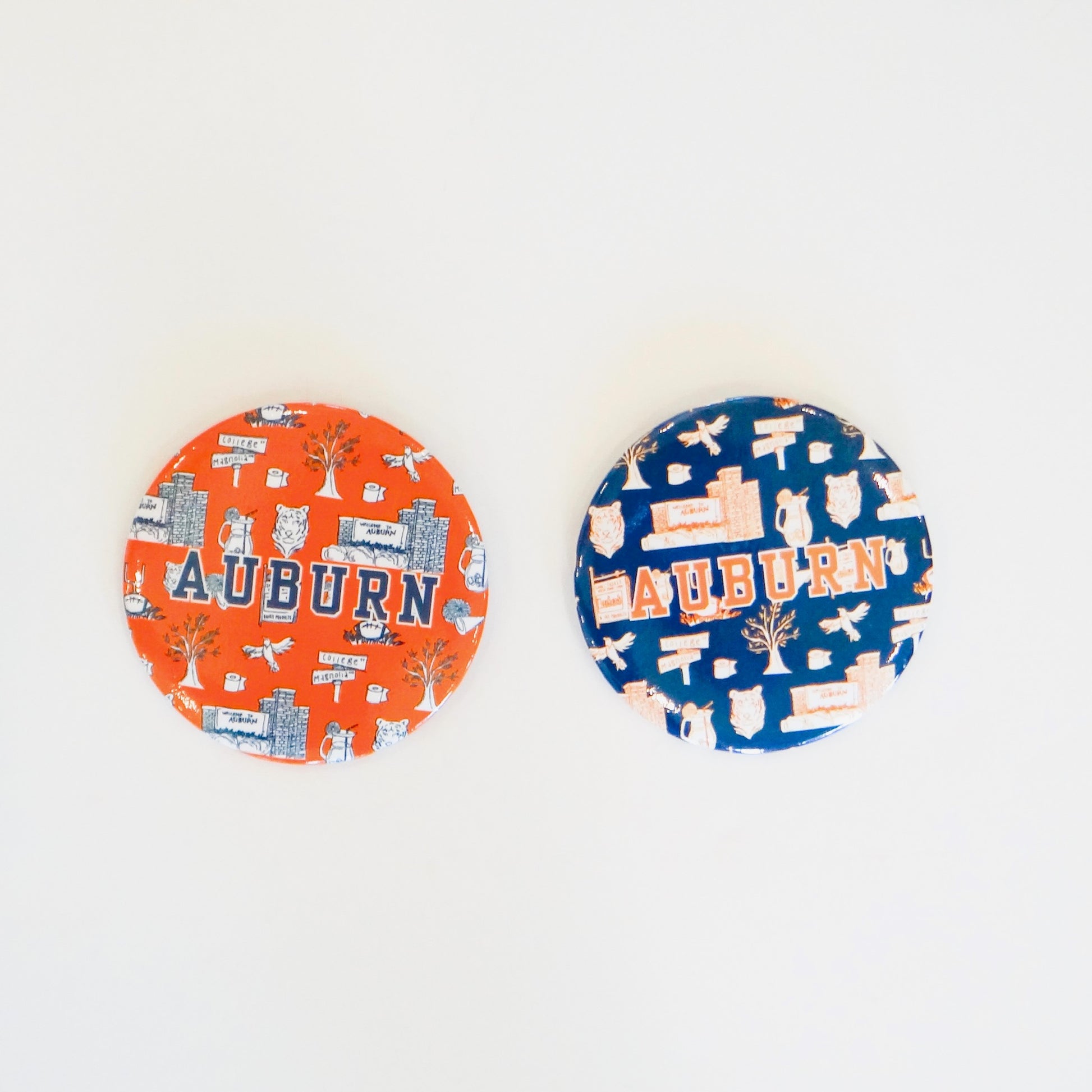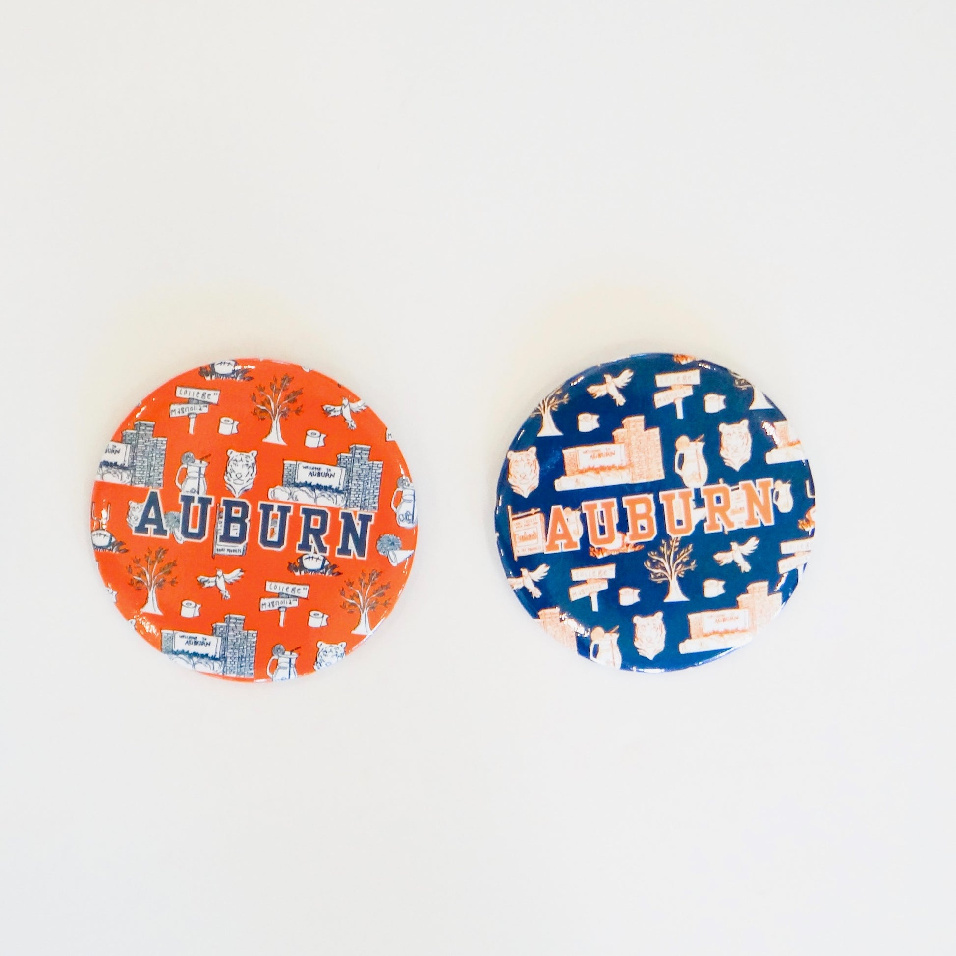 Show your Auburn pride with these cute and unique Auburn Gameday Buttons. Perfect for adding a fun touch to your clothes or purse, they let you celebrate game day in style while standing out from the crowd. Durable and easy to attach, these buttons are a great way to support your team wherever you go.