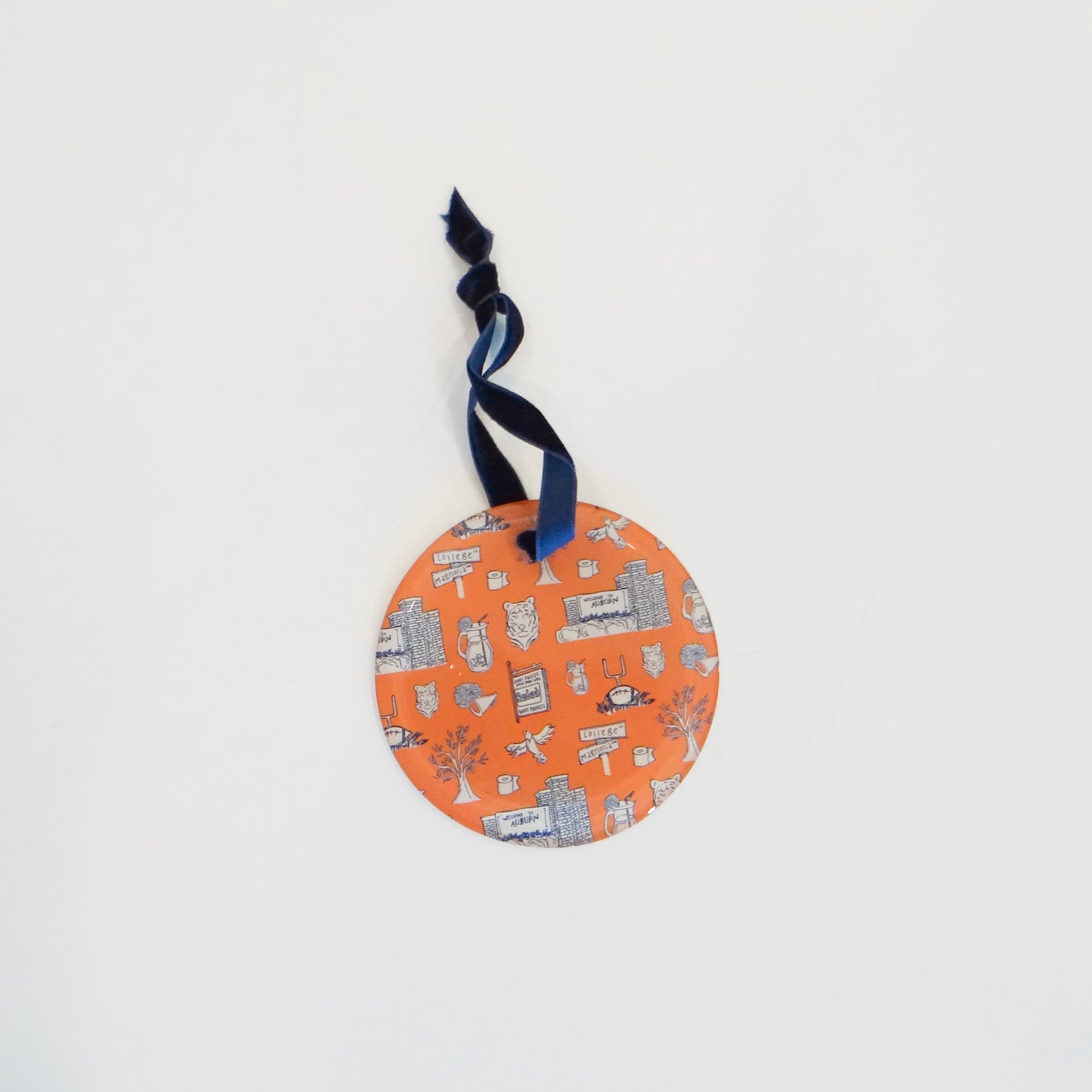 Celebrate your Auburn pride with this elegant glass ornament. Featuring a vibrant orange base adorned with classic white and navy Auburn-themed designs, it captures the spirit of the Tigers perfectly. The ornament is complete with a graceful navy ribbon, making it easy to hang and a charming addition to any holiday décor. Perfect for longtime fans or as a thoughtful gift, this glass circle ornament brings a warm and spirited touch to your celebrations.