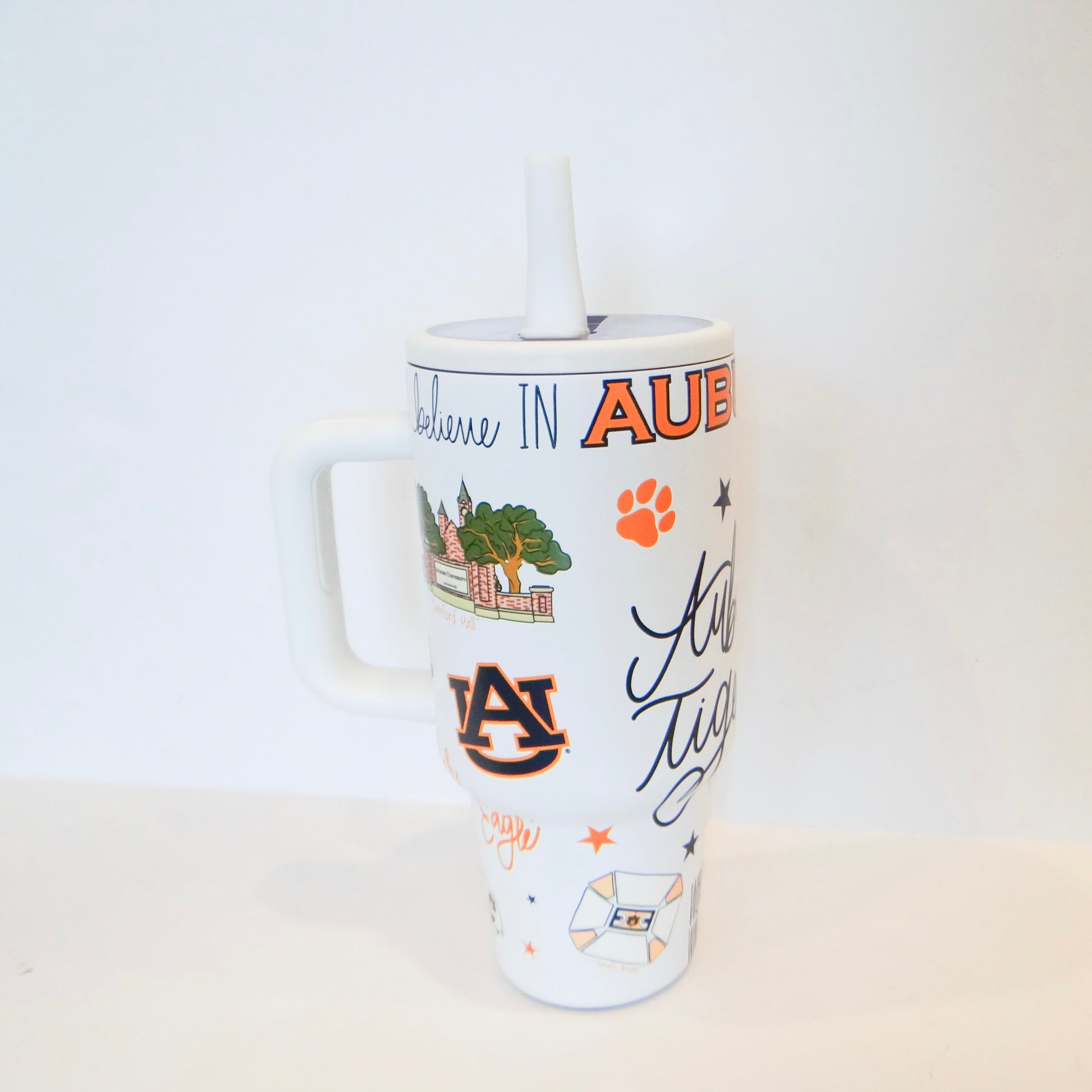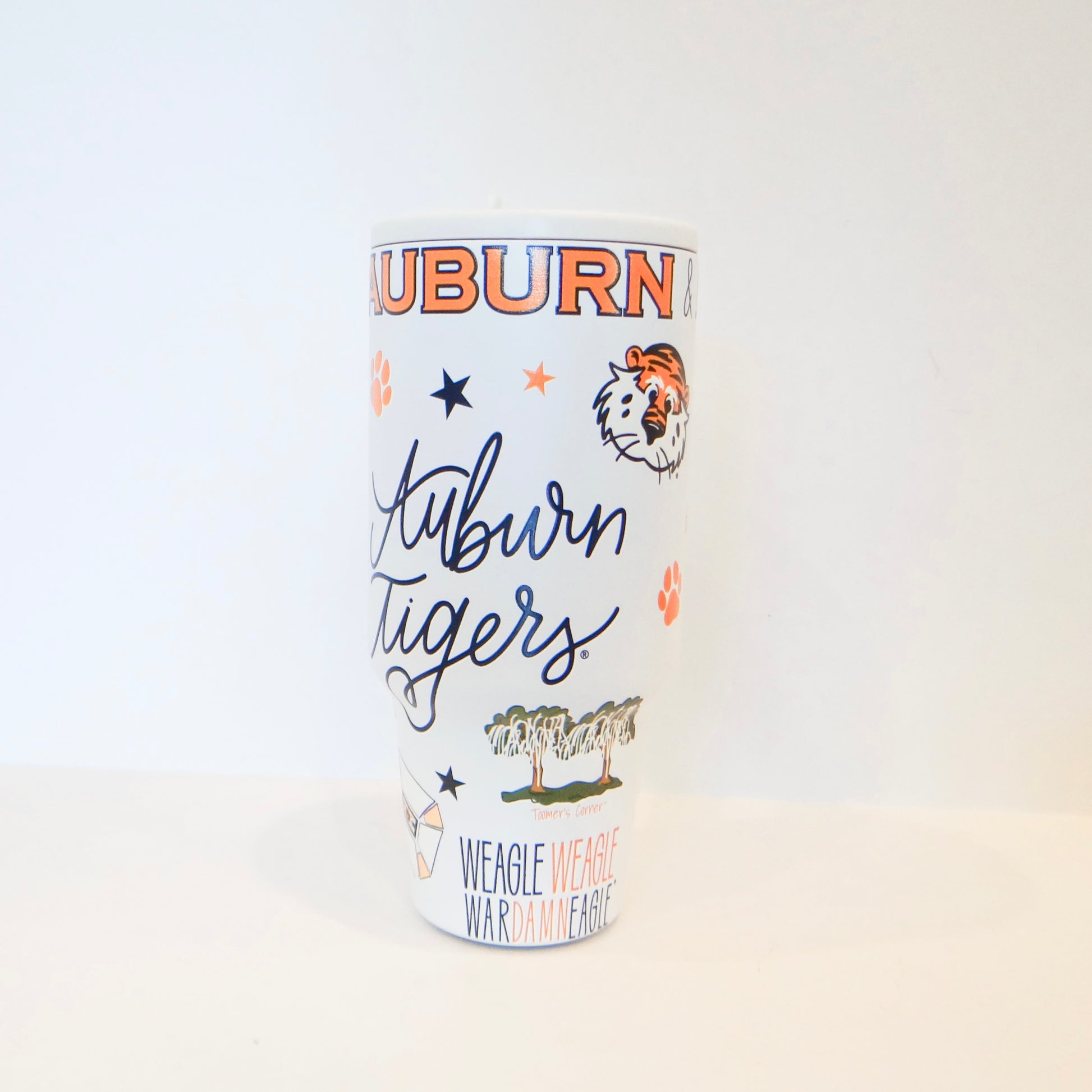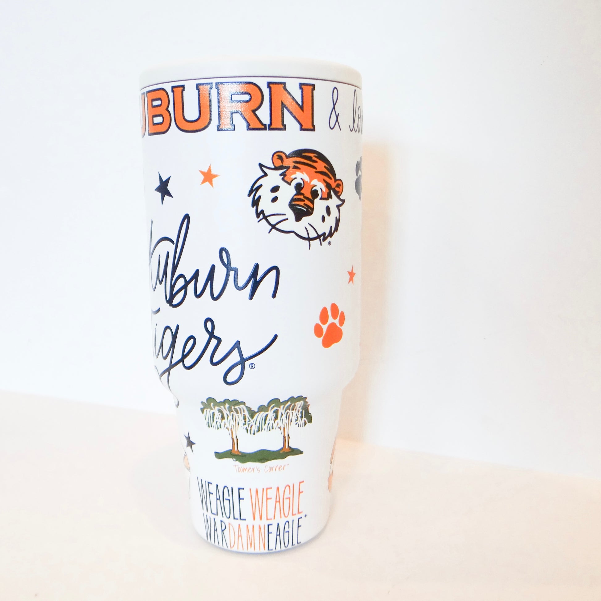 Stay refreshed and show your Auburn Tigers pride with this 30 oz tumbler. Designed to keep drinks cold for 24 hours and hot for 12, it’s perfect for game days or daily use. The included lid and straw make sipping easy and spill-resistant, whether you’re at home, work, or on the go. Your favorite Auburn design keeps your spirit strong while enjoying your favorite beverage all day long.
