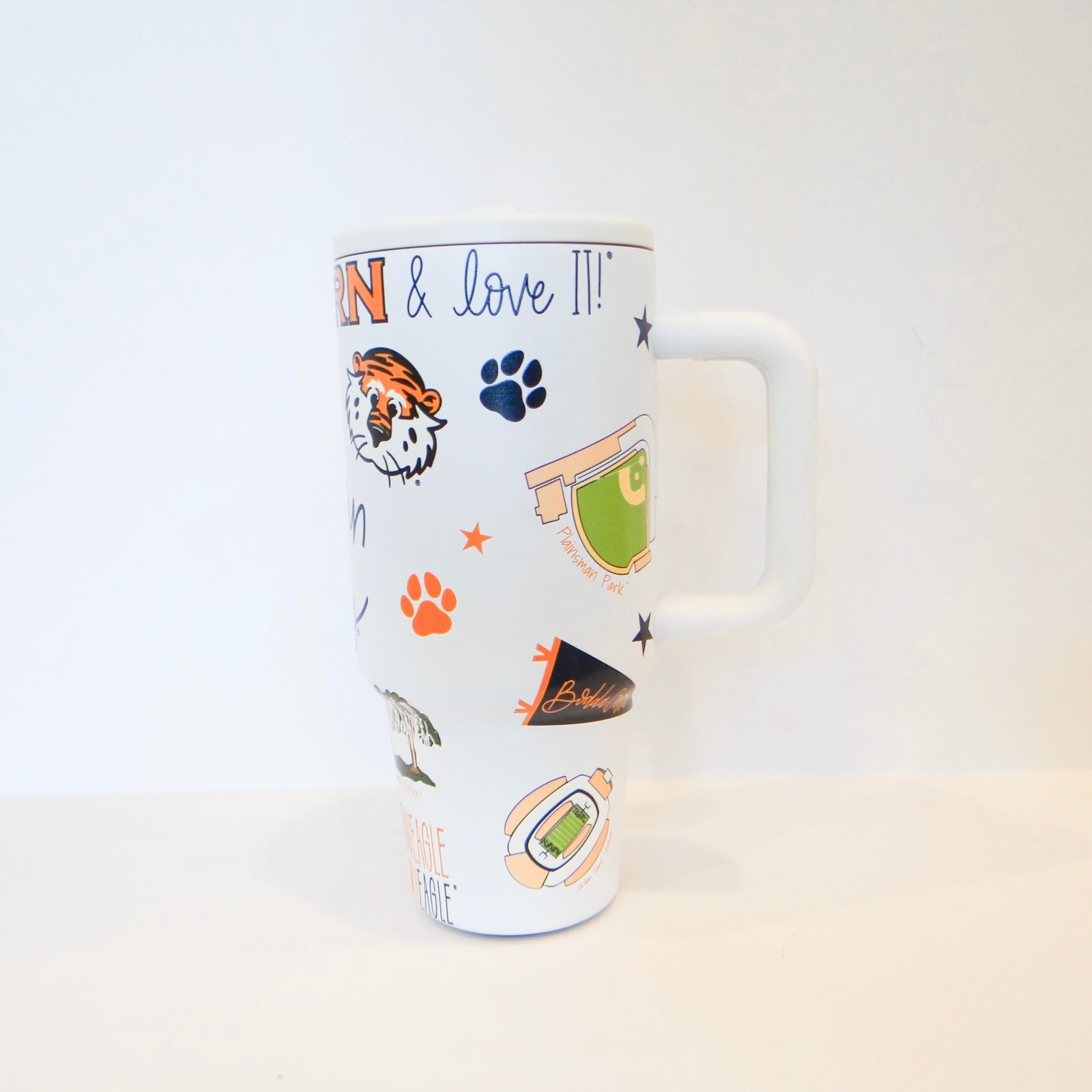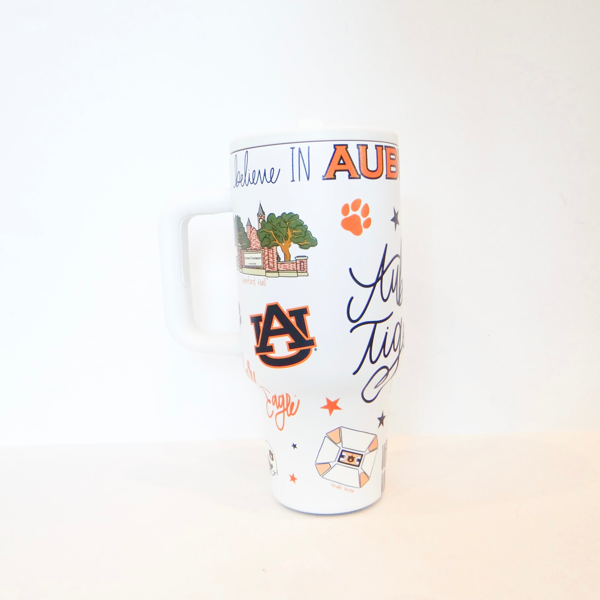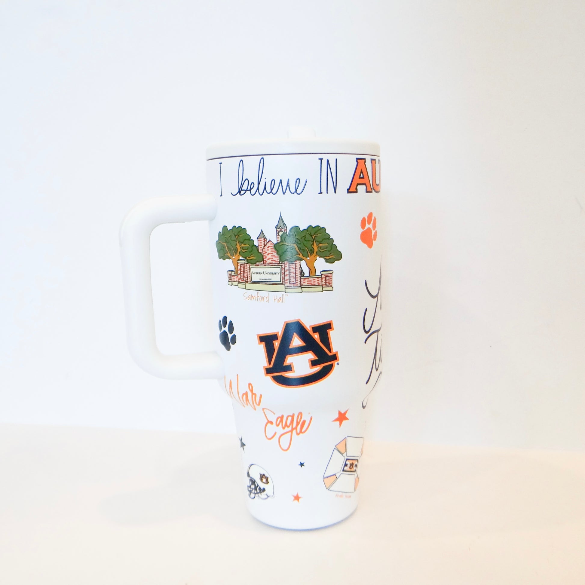 Stay refreshed and show your Auburn Tigers pride with this 30 oz tumbler. Designed to keep drinks cold for 24 hours and hot for 12, it’s perfect for game days or daily use. The included lid and straw make sipping easy and spill-resistant, whether you’re at home, work, or on the go. Your favorite Auburn design keeps your spirit strong while enjoying your favorite beverage all day long.
