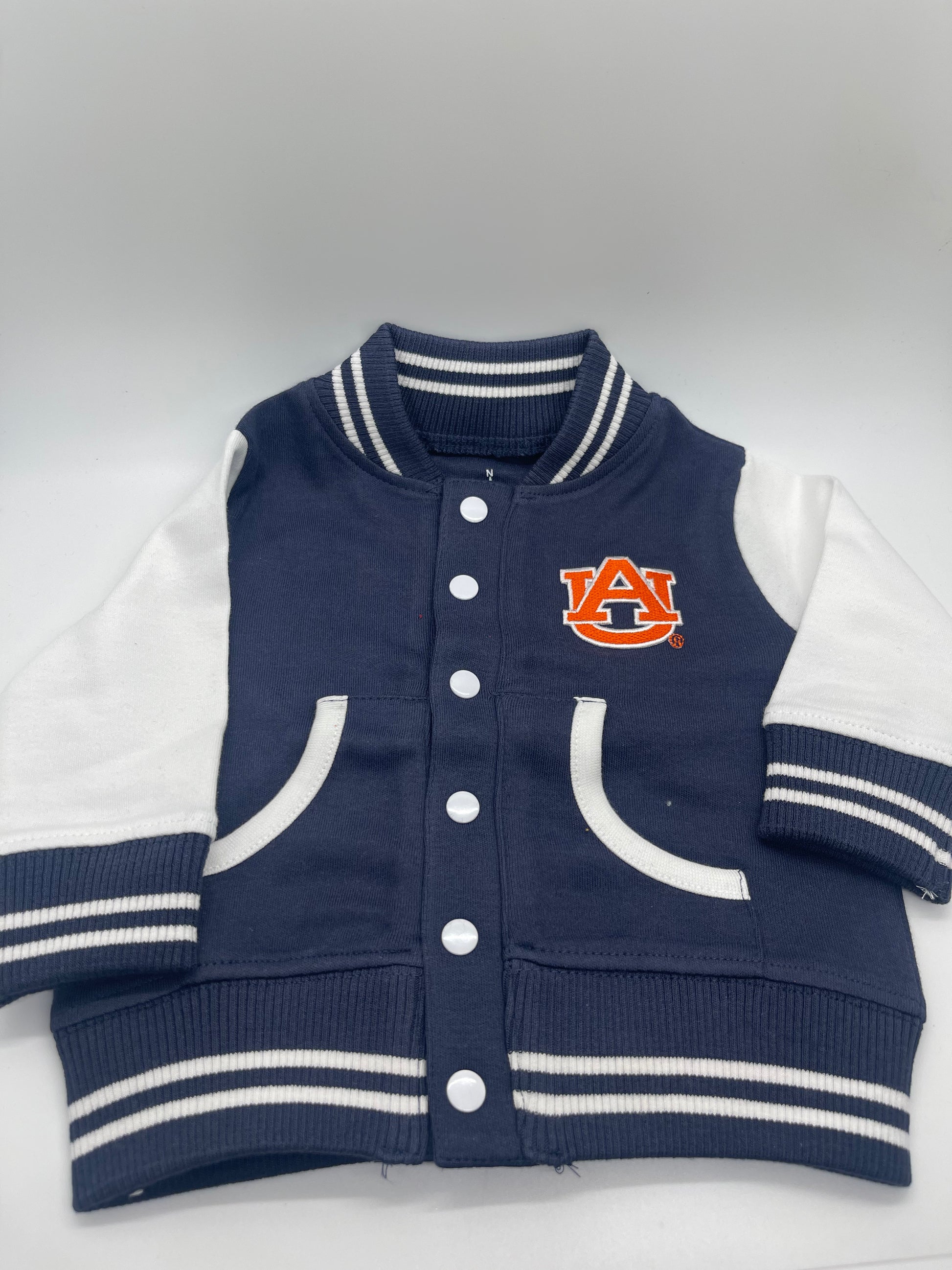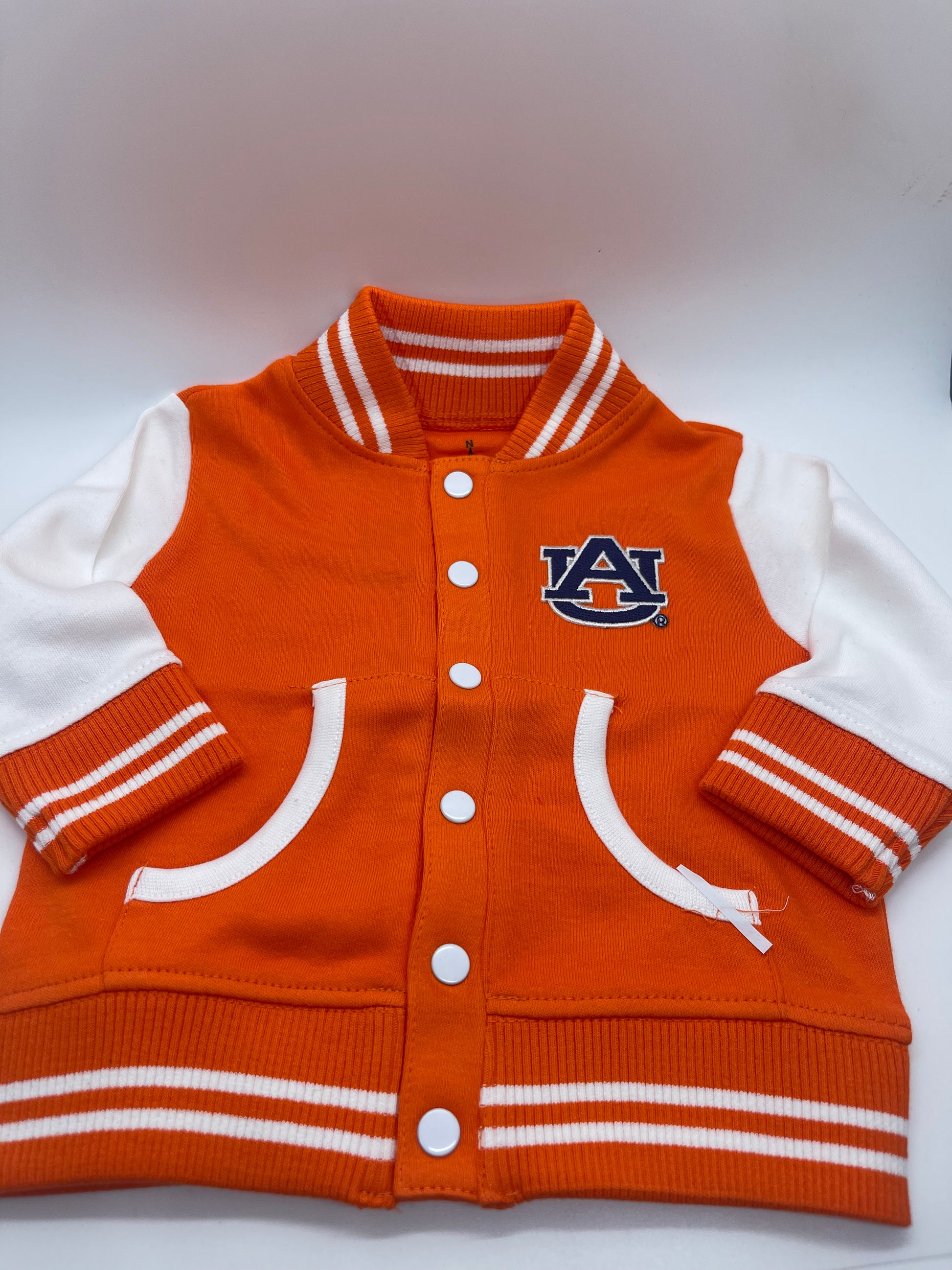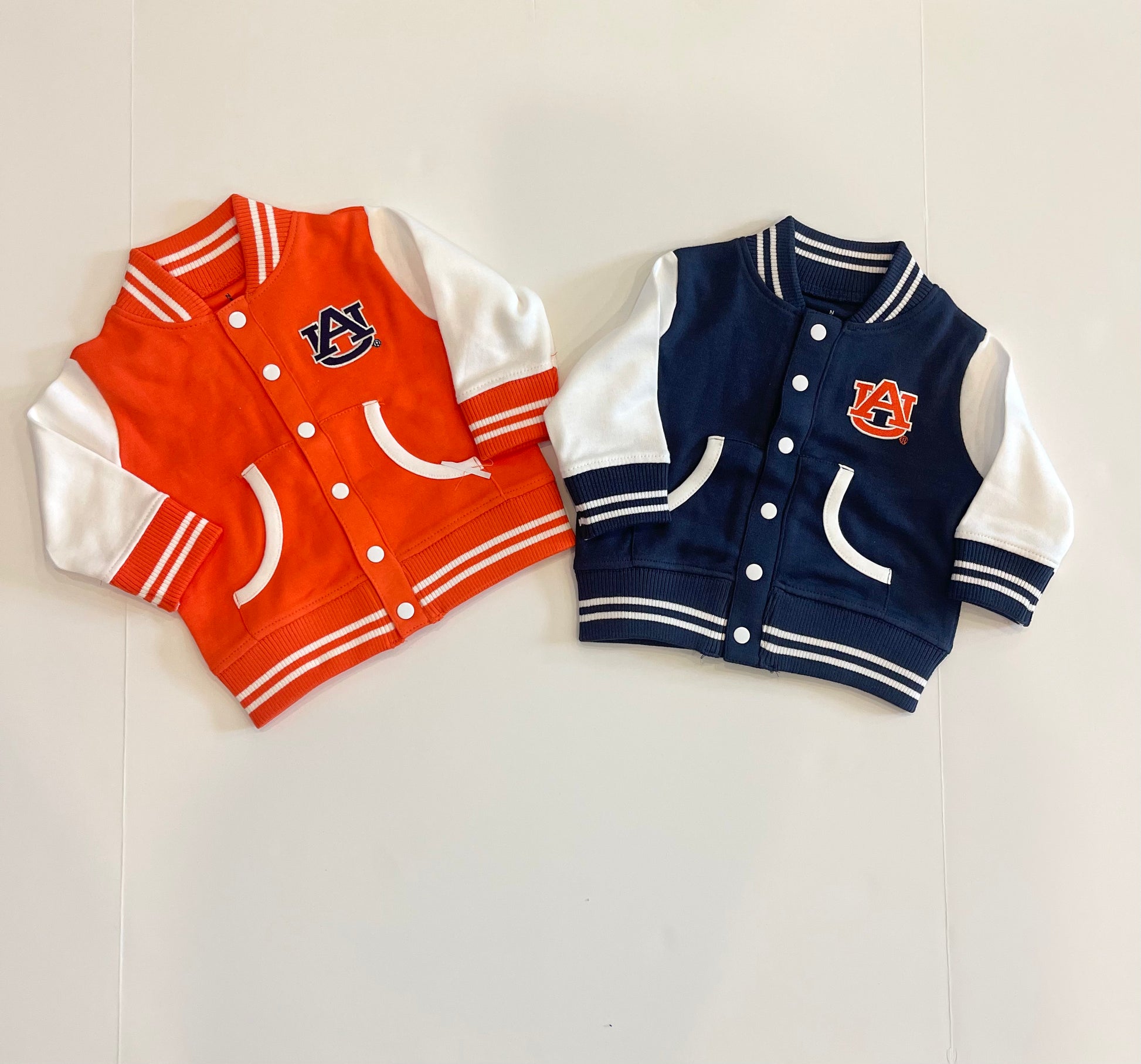 Get your little one game day ready with our Baby Auburn Varsity Jacket. Featuring the iconic Auburn logo, this jacket comes in both navy and orange, making it the perfect addition to any gameday outfit for your baby. Stay warm and stylish while showing off your team pride!