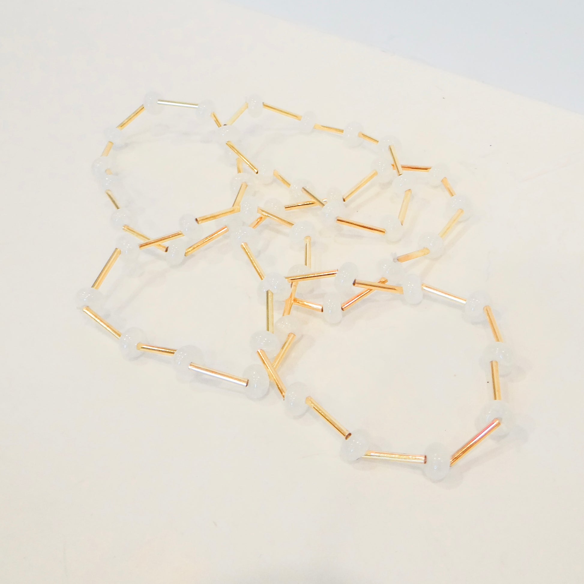 Elevate your everyday style with this versatile five-piece bracelet set. Each bracelet features a delicate combination of shimmering gold bars and crystal-clear beads, creating an effortlessly elegant look that works with any outfit. The lightweight, stretchy design ensures a comfortable fit for all-day wear, whether you're dressing up for a special occasion or keeping it casual. Mix and match the pieces or wear them together for a stacked effect that catches the light beautifully. Perfect for layering or gifting to someone special.