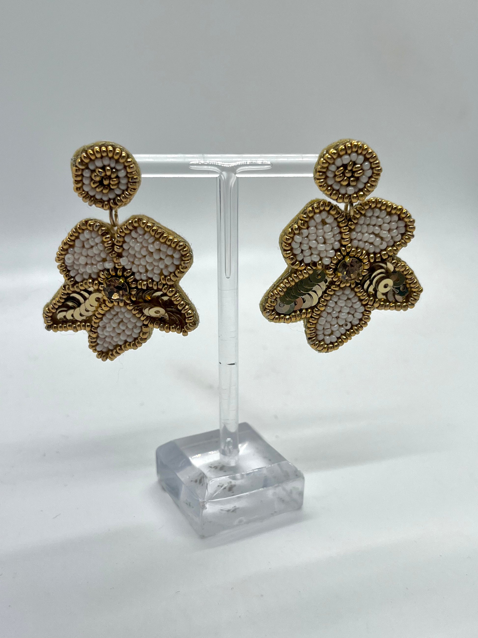 Add a touch of cuteness to any outfit with our Beaded Flower Earrings. These adorable earrings feature intricate white and gold beading, making them the perfect accessory for any occasion. Bring some fun and whimsy to your wardrobe with these stylish and playful earrings.