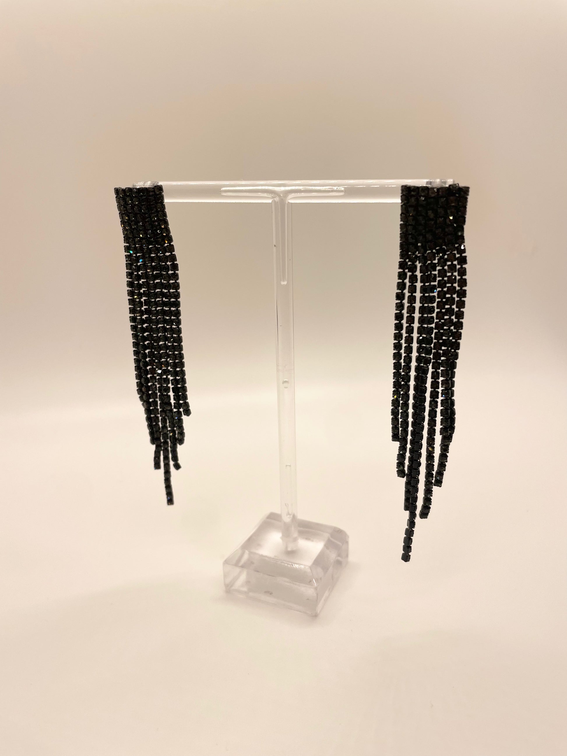 Add a touch of glamour to your outfit with our Black Jewel Fringe Statement Earrings. These earrings are perfect for any occasion and will elevate your look with their stunning black jewels and statement fringe design. A must-have for any fashion-forward individual.