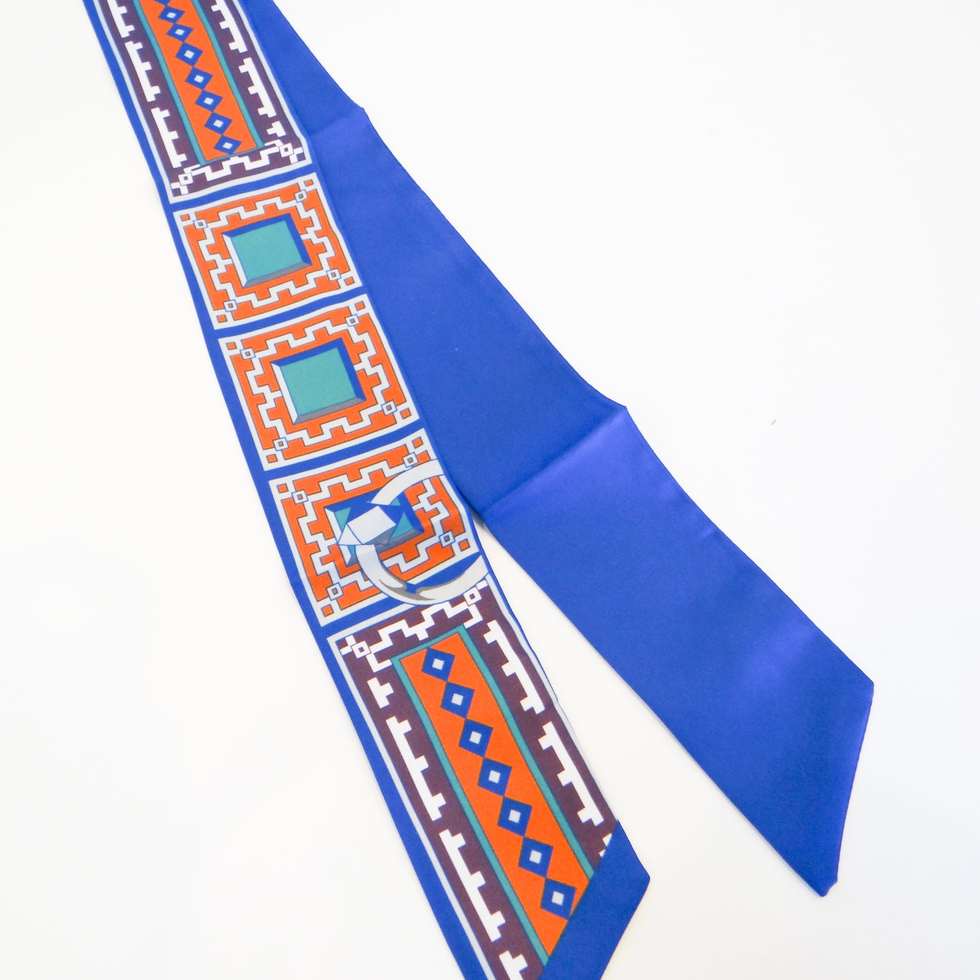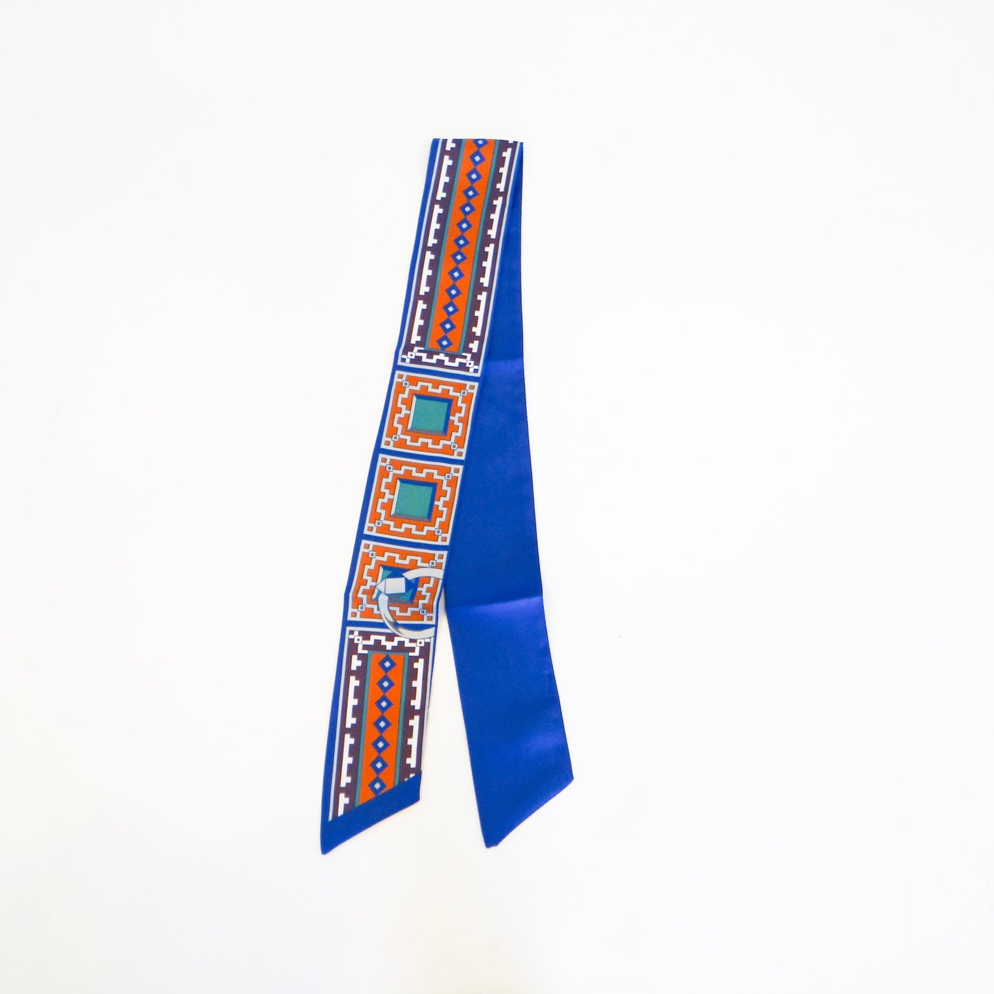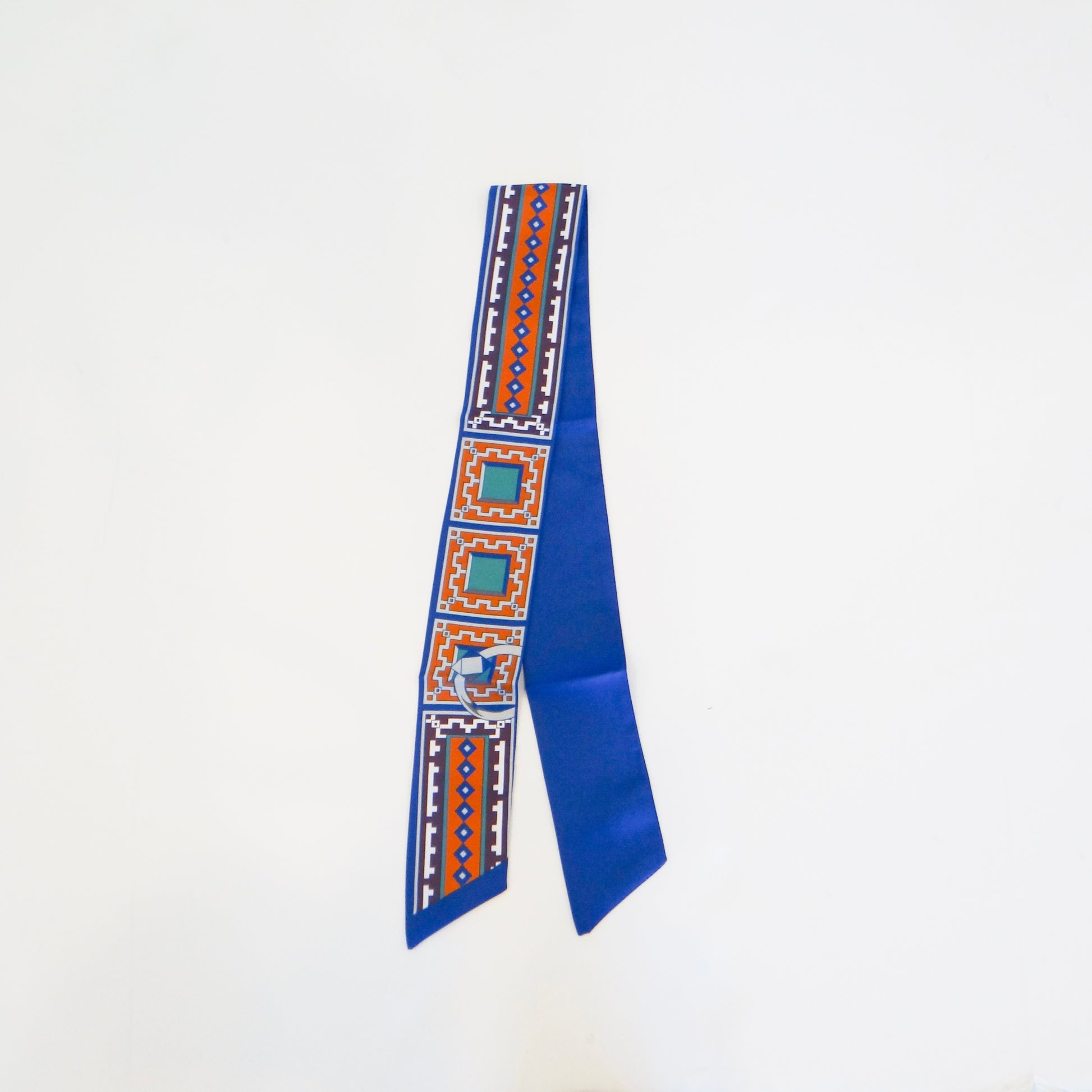 This slim blue twilly scarf features a striking rust geometric pattern, making it a versatile accessory that complements various outfits. Its colors subtly evoke Auburn’s signature hues, perfect for showing off your spirit with a stylish touch. Lightweight and easy to wear, it adds a refined accent to your look while keeping it effortlessly chic.