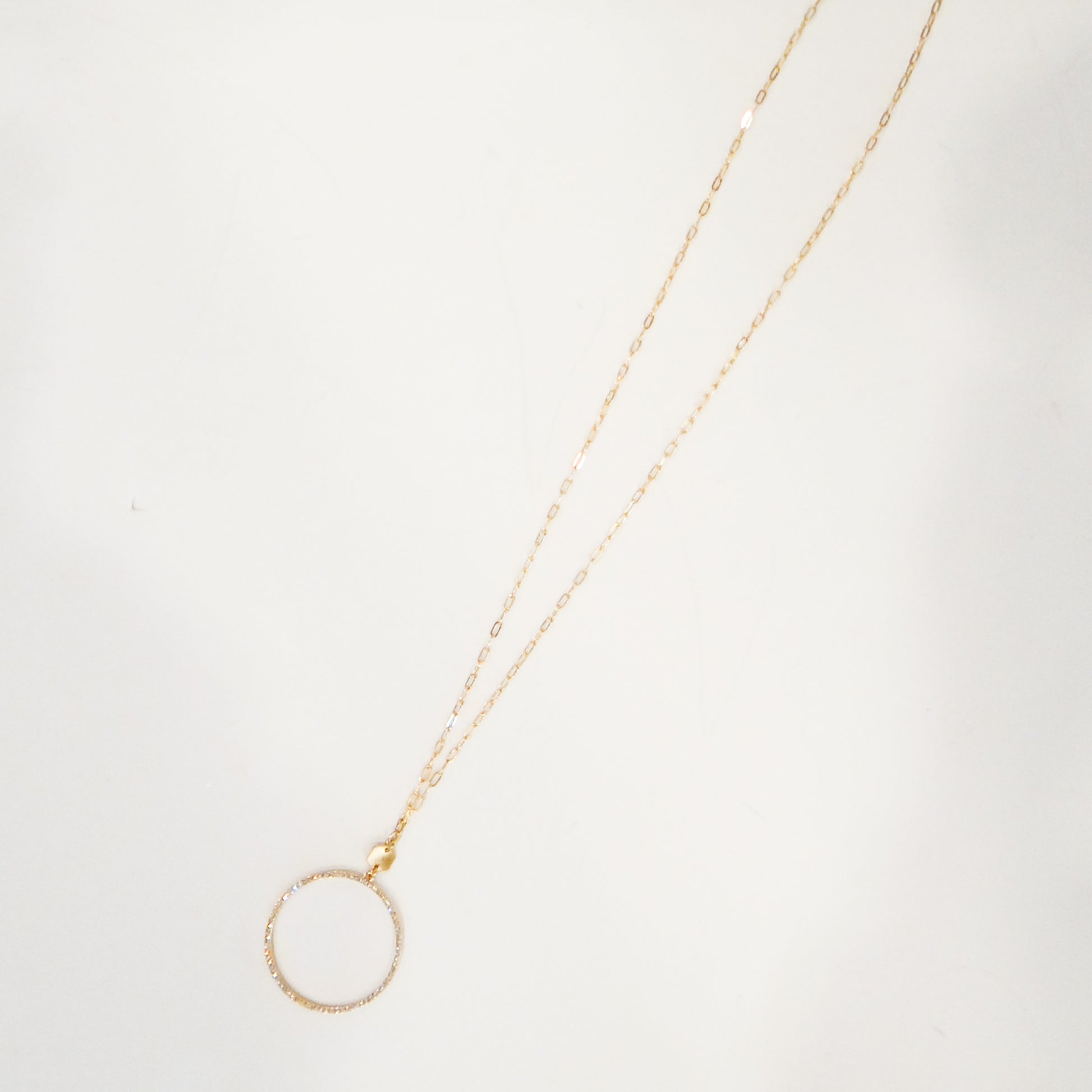 Elevate your everyday style with this stunning boho rhinestone necklace. Featuring a delicate gold chain paired with a sparkling rhinestone circle pendant, this piece brings just the right amount of glamour to any outfit. The long length offers versatile styling options—wear it layered with other necklaces for a trendy look or let it shine solo as a statement piece. Perfect for adding a touch of elegance to casual wear or dressing up your favorite evening ensemble. Whether you're heading to brunch or a special occasion, this necklace is your go-to accessory for effortless sophistication.