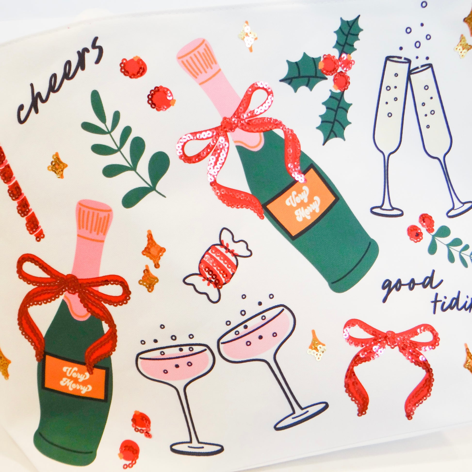 Celebrate the season in style with our Bubbles Tote—the perfect companion for holiday shopping, gift-giving, and festive gatherings. This spacious tote features a cheerful champagne and cheers design that captures the joy of Christmas celebrations. Whether you're carrying presents to parties, stocking up on seasonal essentials, or looking for a thoughtful gift, this versatile bag brings festive flair to every outing. Durable and practical, it's a seasonal favorite that keeps giving long after the holidays end.