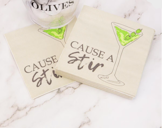 Elevate your hosting game with Cause a Stir Cocktail Napkins. These cute and sassy napkins are perfect for any party, adding a touch of personality to your event. Make a statement and impress your guests with these fun and stylish napkins.