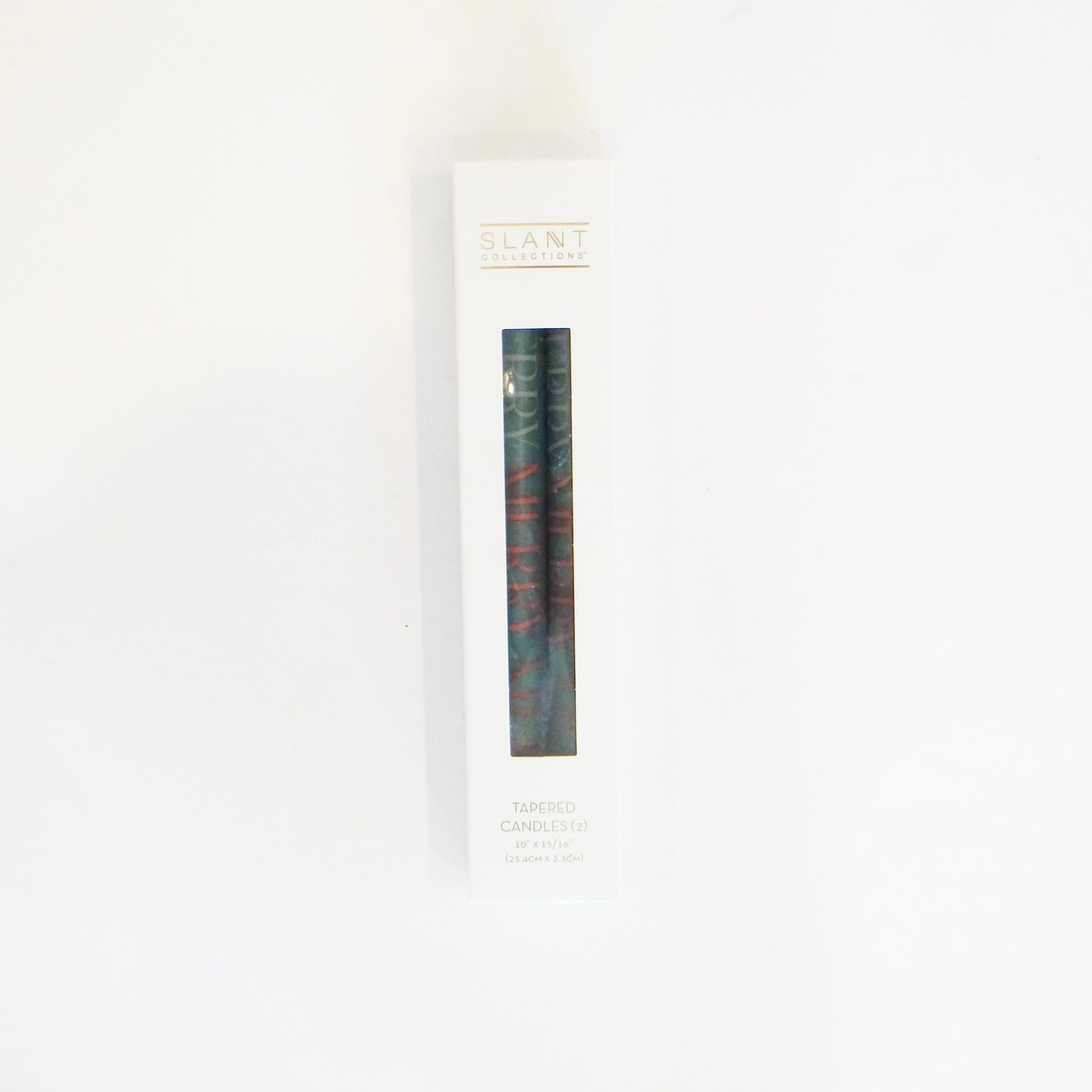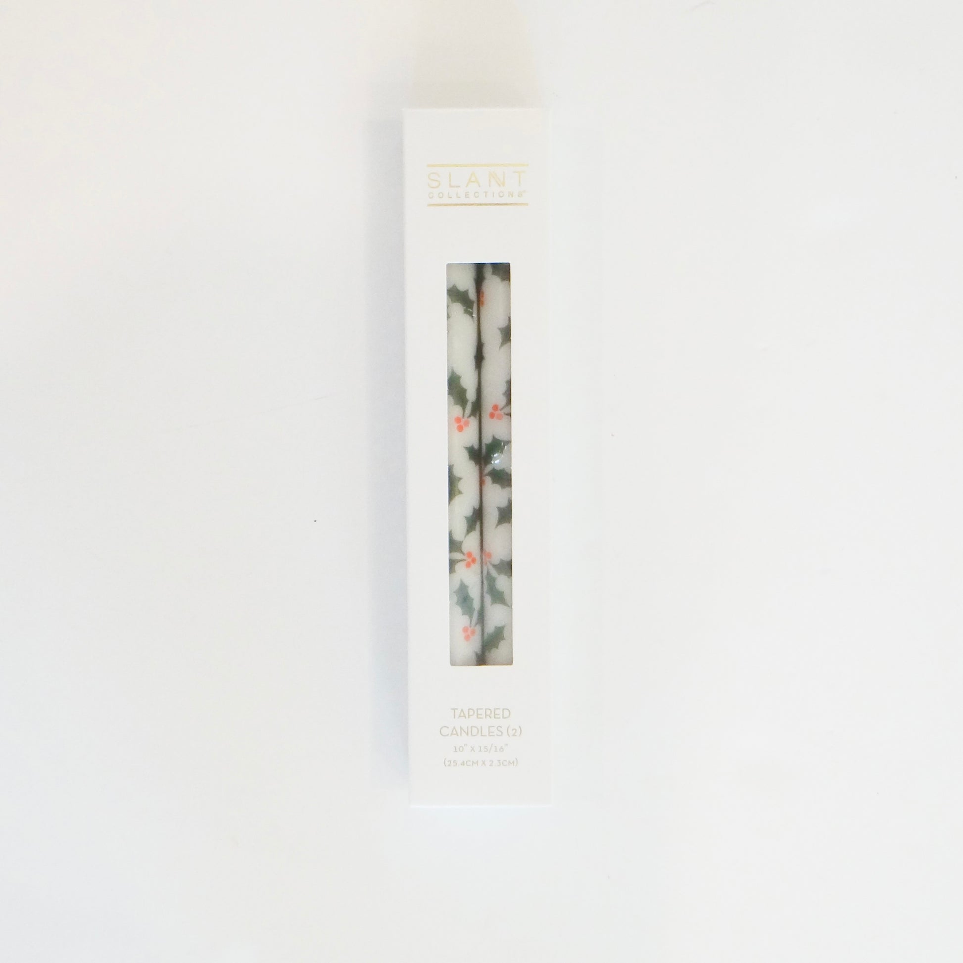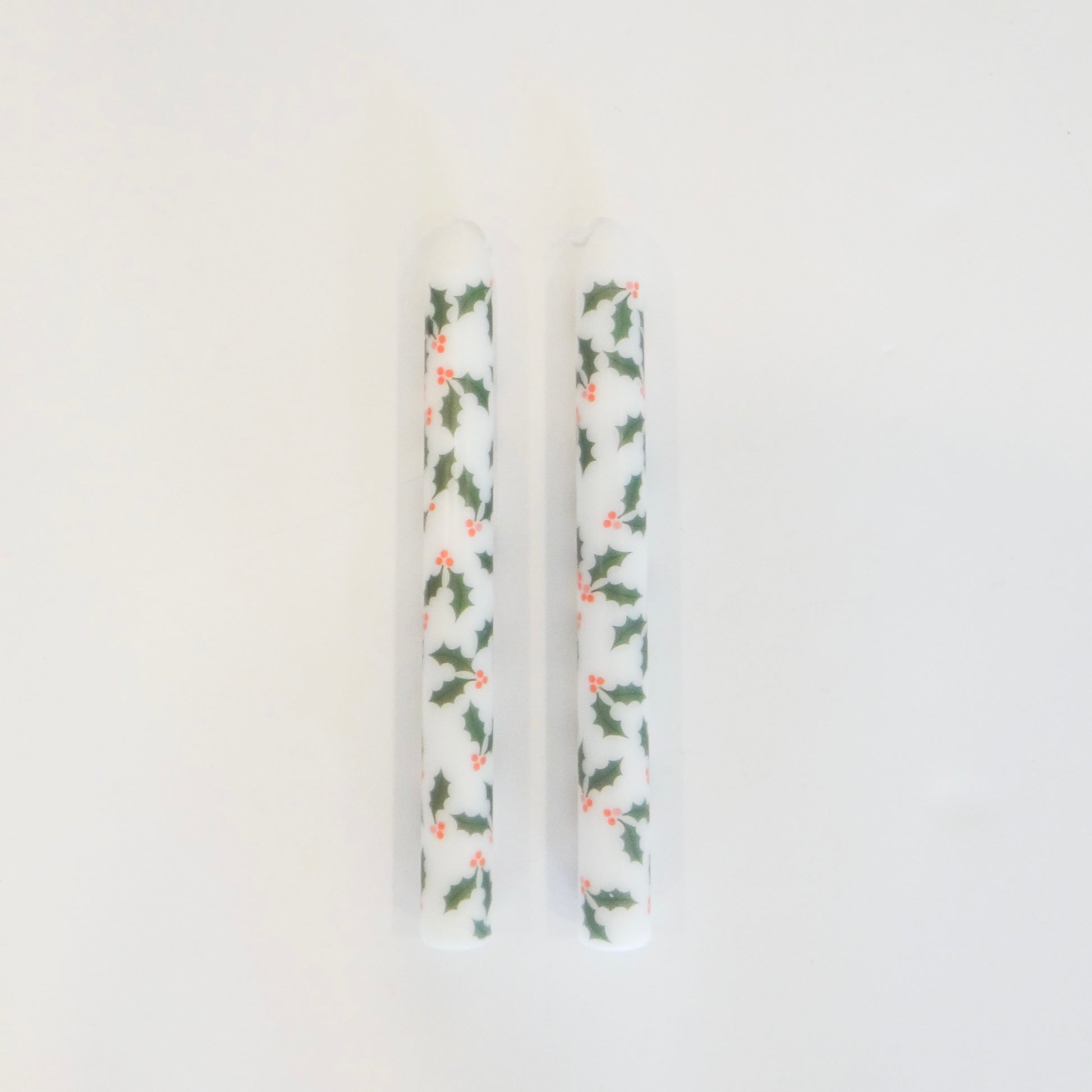 Enhance your holiday ambiance with this set of two Christmas taper candles featuring festive holly and merry designs. Perfect for adding warmth and charm to your seasonal decor, these candles bring a cozy, inviting glow to any table or mantel. Ideal for creating a joyful atmosphere during your holiday gatherings.