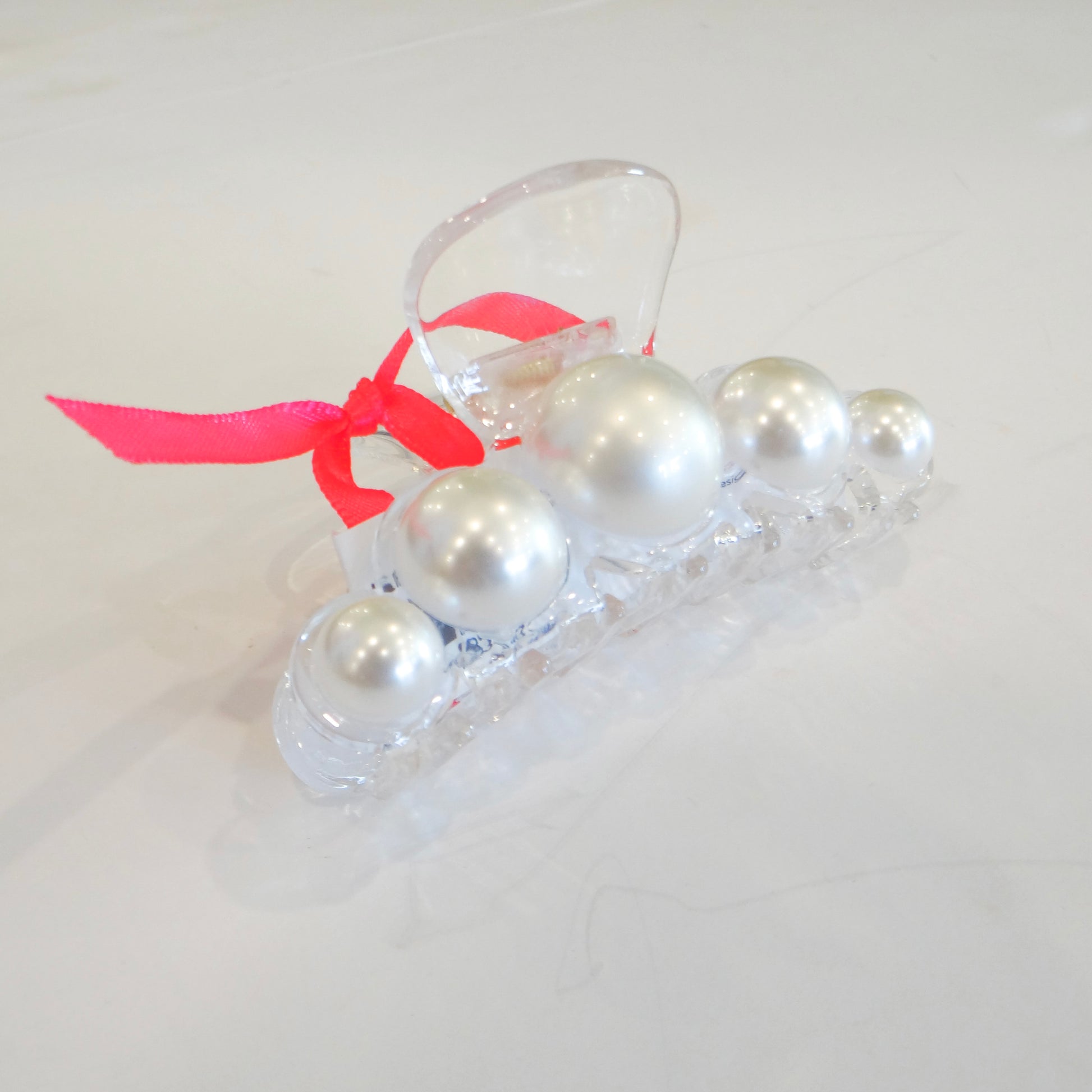 This lightweight clear claw clip, accented with elegant pearls along the edges, makes a thoughtful and stylish gift. Its delicate design ensures comfort while securely holding your hair. Perfect for everyday wear or special occasions, it adds a subtle touch of sophistication to any look.