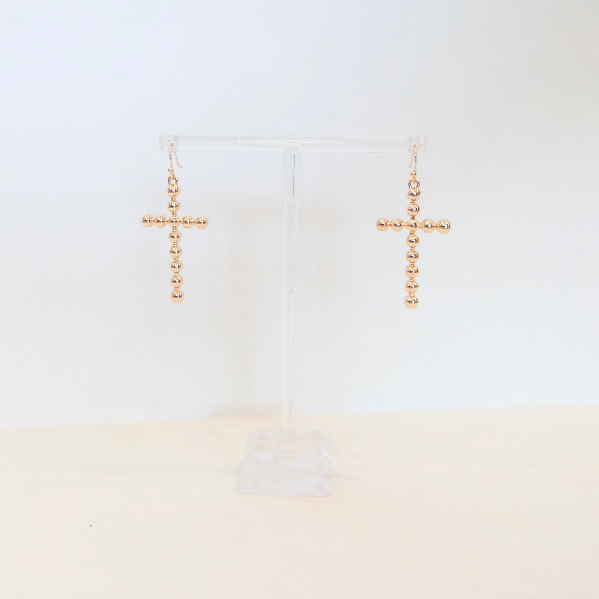 Add a touch of elegance to your outfit with our beaded cross dangle earrings. These earrings are made with high-quality materials and expert craftsmanship, creating a beautiful and delicate design. A subtle statement piece that can be worn for any occasion.
