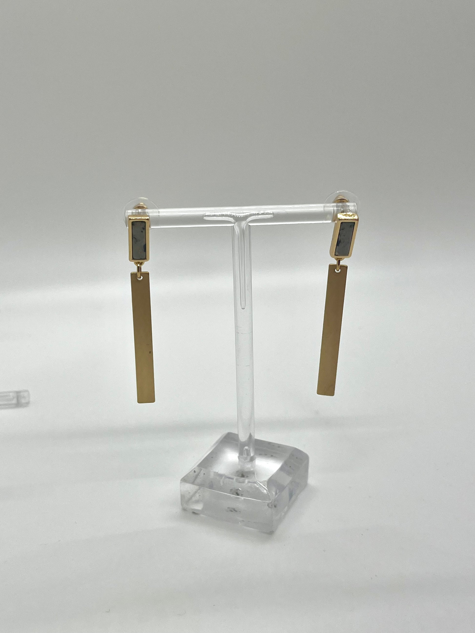 Add a touch of playfulness to your outfit with our Dalmatian and Natural Stone Bar Earrings. These cute and casual earrings are the perfect accessory for any occasion. Elevate your style with a pop of fun and add a unique touch to your look.