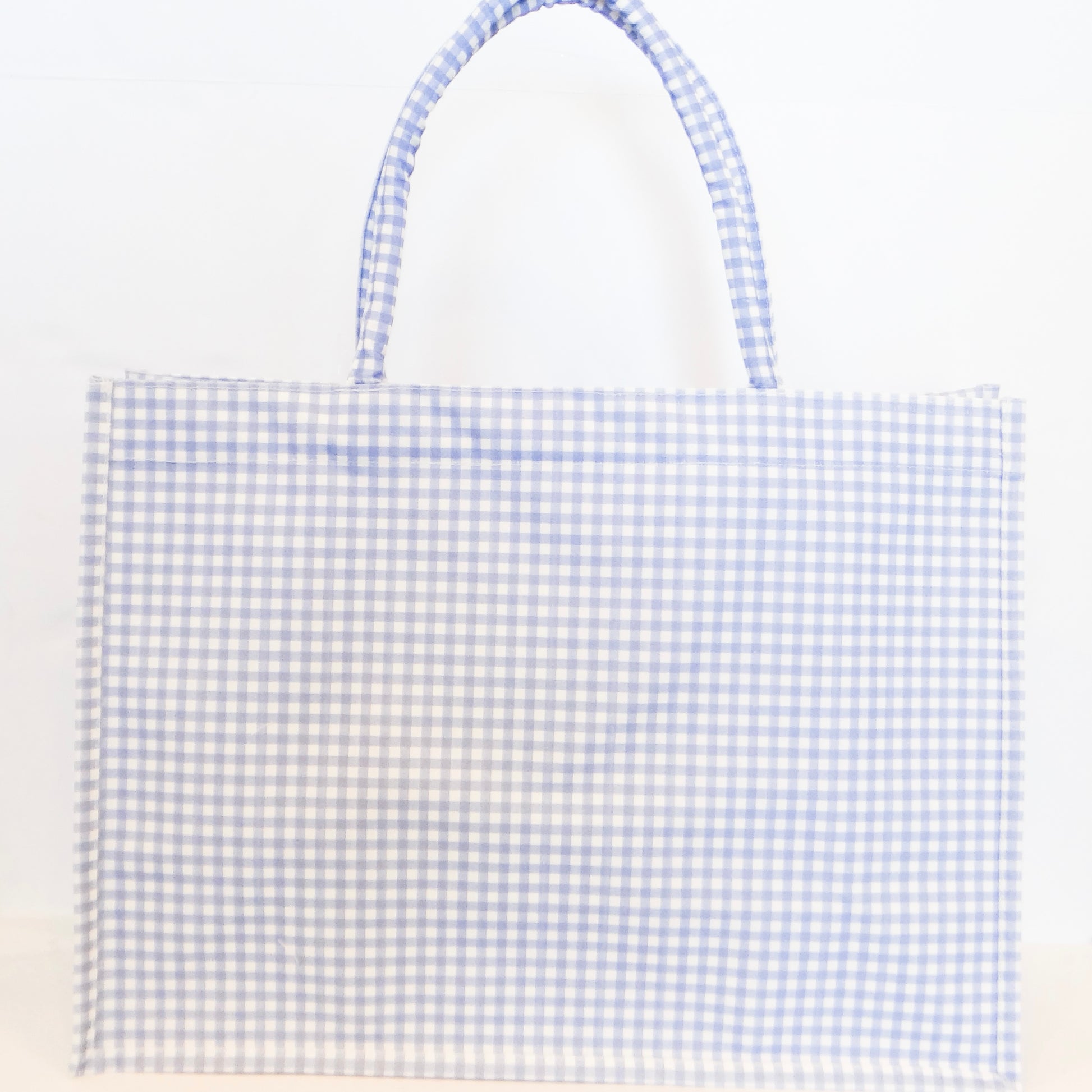 The Gingham Classic Tote combines timeless white and blue gingham fabric with durable construction, making it an ideal everyday bag. Its spacious interior comfortably holds essentials, while sturdy handles ensure easy carrying. Perfect for errands, beach days, or casual outings, this tote offers both style and practicality to support your busy lifestyle.
