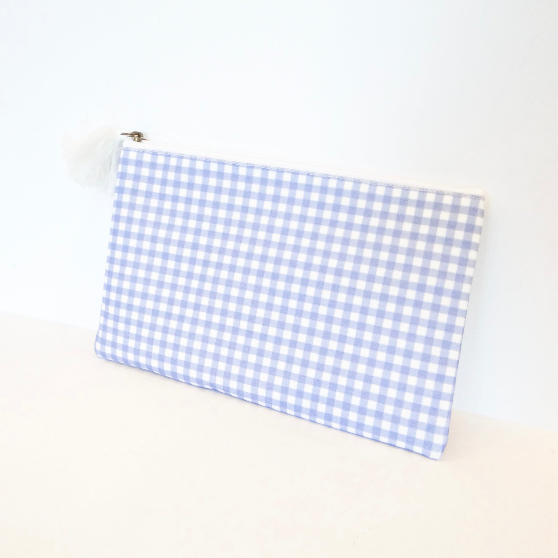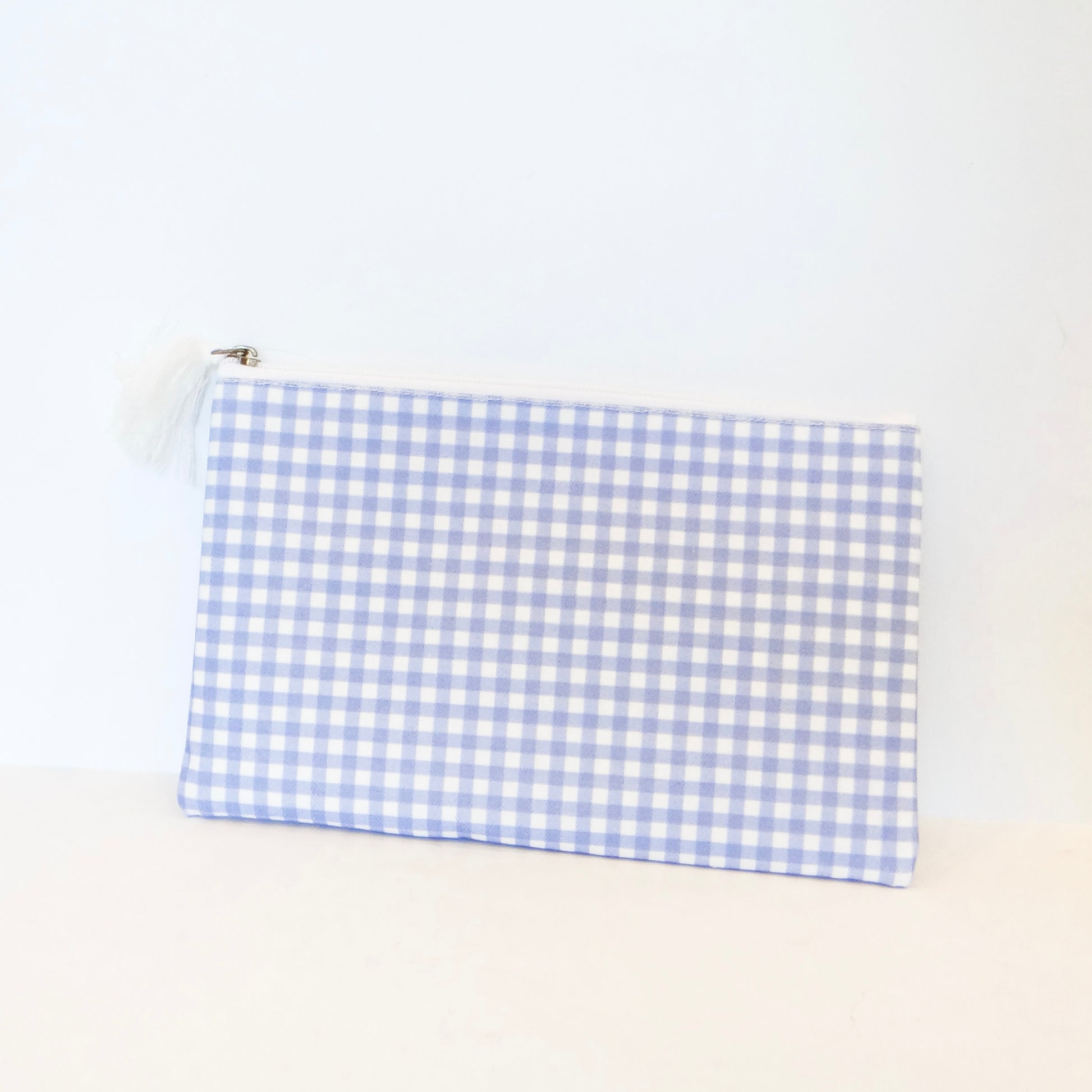 Keep your essentials organized with this charming blue and white gingham cosmetic bag. Its compact size makes it perfect for travel or everyday use, fitting easily into any purse or tote. The sturdy fabric offers reliable protection for your makeup and toiletries, helping you stay prepared and confident wherever you go.