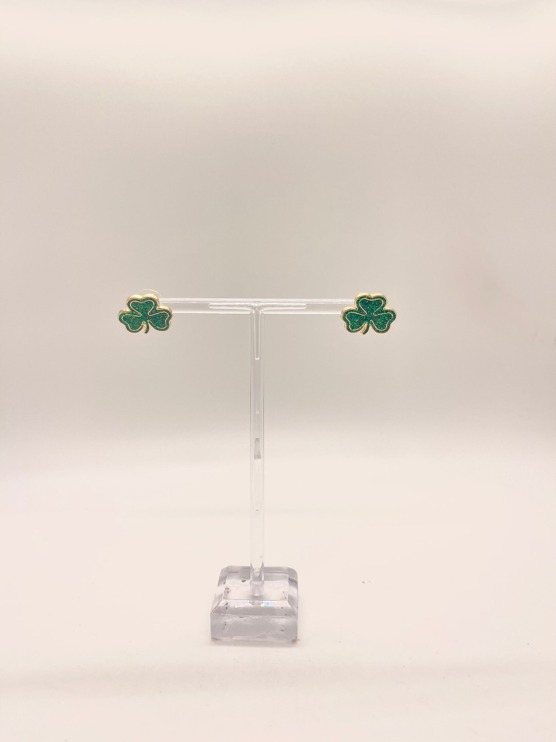 Add a touch of sparkle to your look with our Glitter Clover Studs. These stylish earrings feature a green clover design, perfect for celebrating St. Patrick's Day. With their glitter finish, they will add a fun and festive touch to any outfit. Show off your festive spirit with these charming studs.
