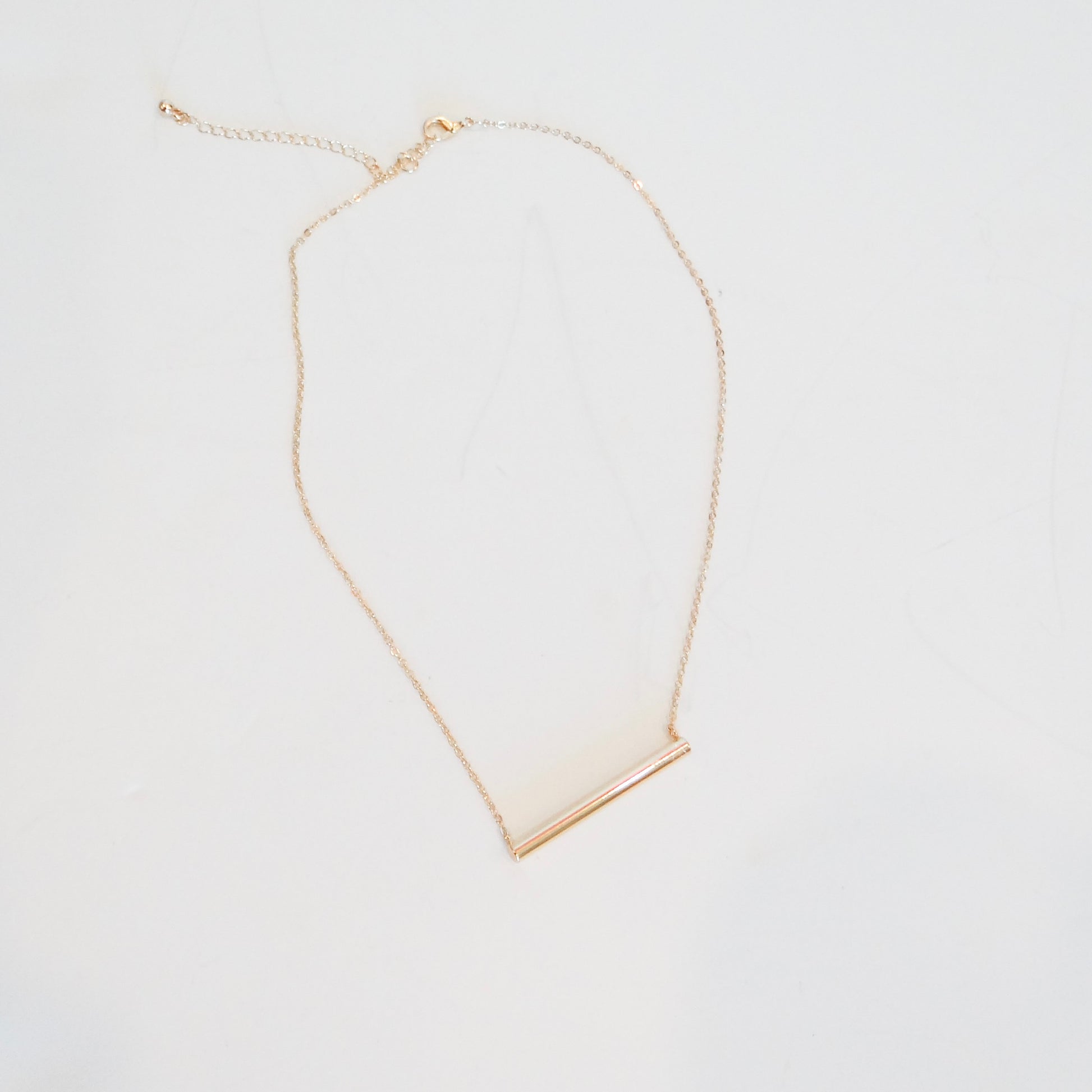 Elevate your everyday style with this timeless gold bar necklace. The sleek, minimalist design features a polished gold bar pendant that catches the light beautifully, making it perfect for layering or wearing solo. Whether you're dressing up for a special occasion or adding a touch of sophistication to casual wear, this versatile piece complements any wardrobe. The delicate chain and elegant bar create a balanced look that works for both modern and classic aesthetics. A wardrobe essential that you'll reach for again and again.