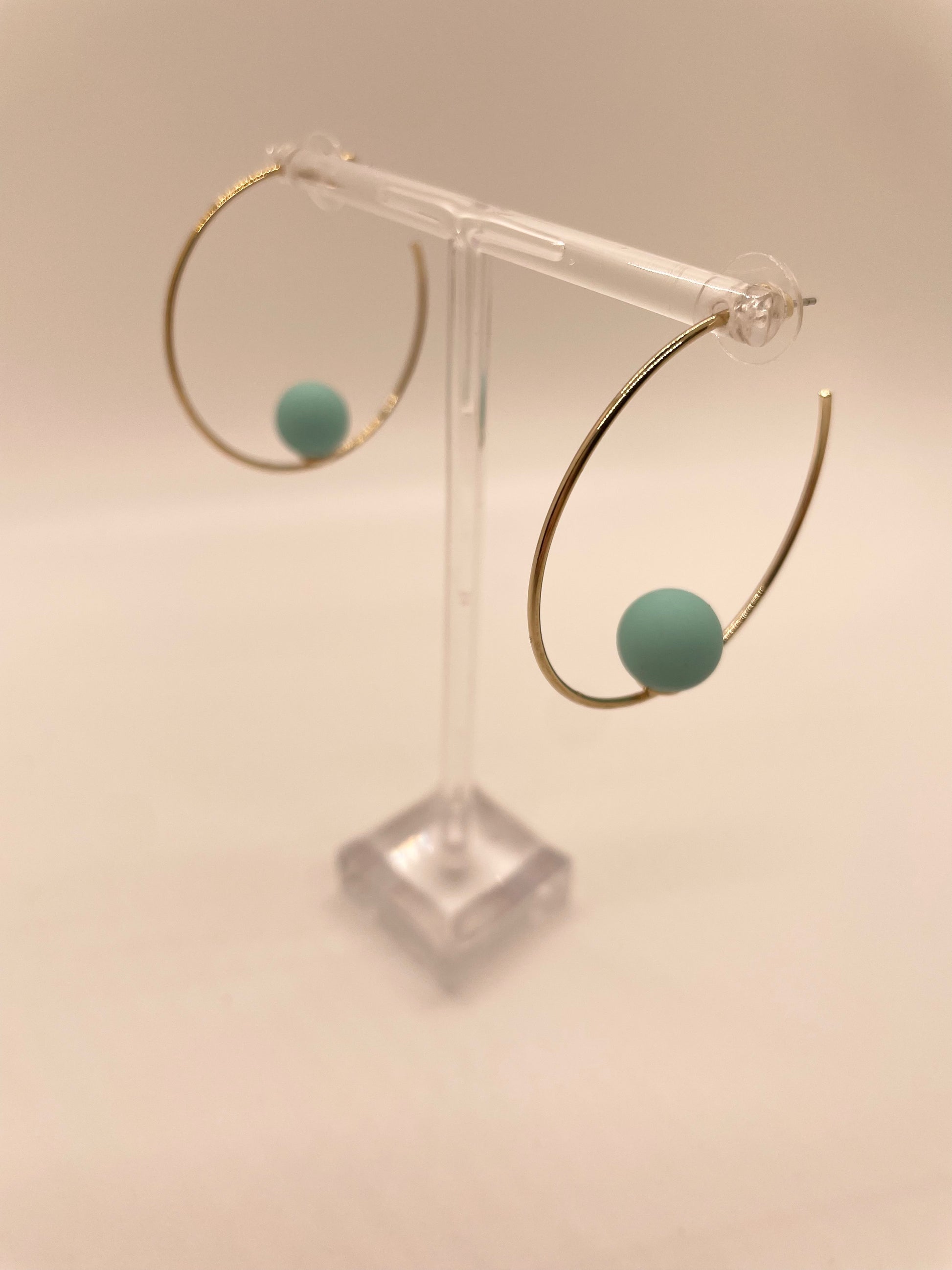 Elevate your style with our Gold Hoop with Aqua Ball earrings. The elegant gold hoop adds a touch of sophistication while the eye-catching aqua ball brings a pop of color. Perfect for any occasion, these earrings combine style and fun effortlessly. Upgrade your jewelry collection with this must-have piece.