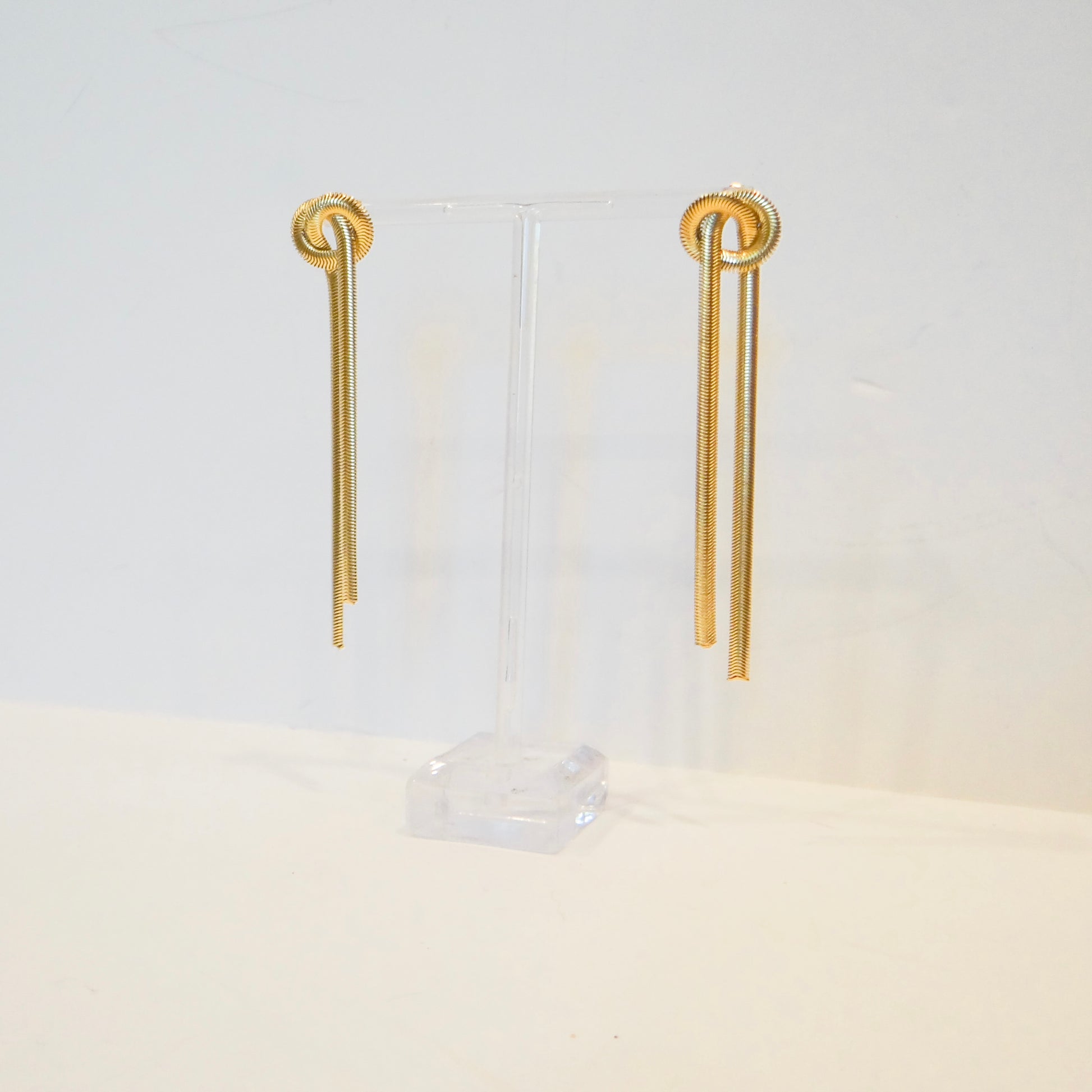 Elegant gold chain earrings featuring a charming knot detail at the top with graceful strands cascading below. Crafted to be wonderfully lightweight, these pieces move beautifully with you throughout your day without weighing you down. The delicate knot design adds a touch of sophistication to any outfit, whether you're dressing up for a special occasion or elevating your everyday style. A versatile addition to your jewelry collection that feels as good as it looks.