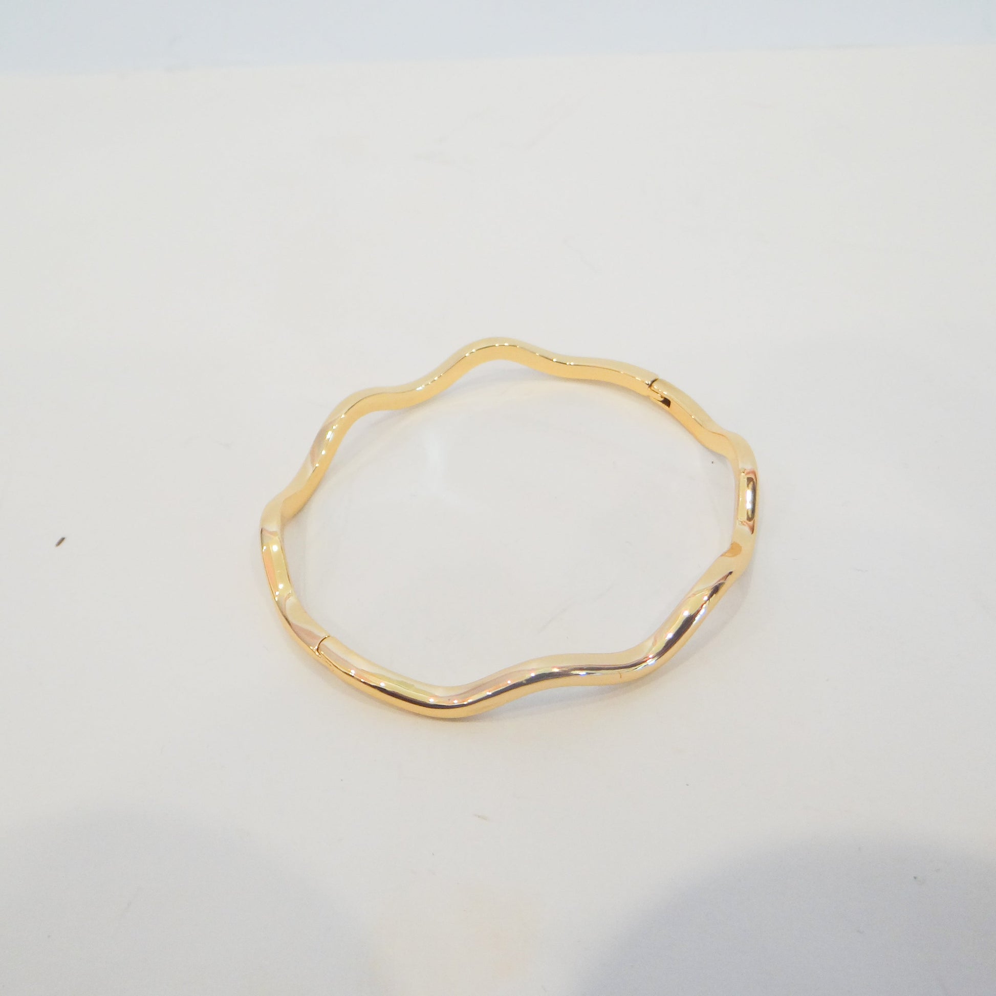 Elevate your everyday style with these stunning gold wave bangles designed for comfort and elegance. This versatile set includes one sleek plain gold bangle and one adorned with shimmering rhinestones along the side, giving you options for any occasion. Crafted with hypoallergenic materials, these lightweight bangles are gentle on sensitive skin and perfect for all-day wear. The graceful wavy design adds dimension and movement to your wrist, while the quality construction ensures lasting beauty. Mix and match or wear them together for a sophisticated layered look.