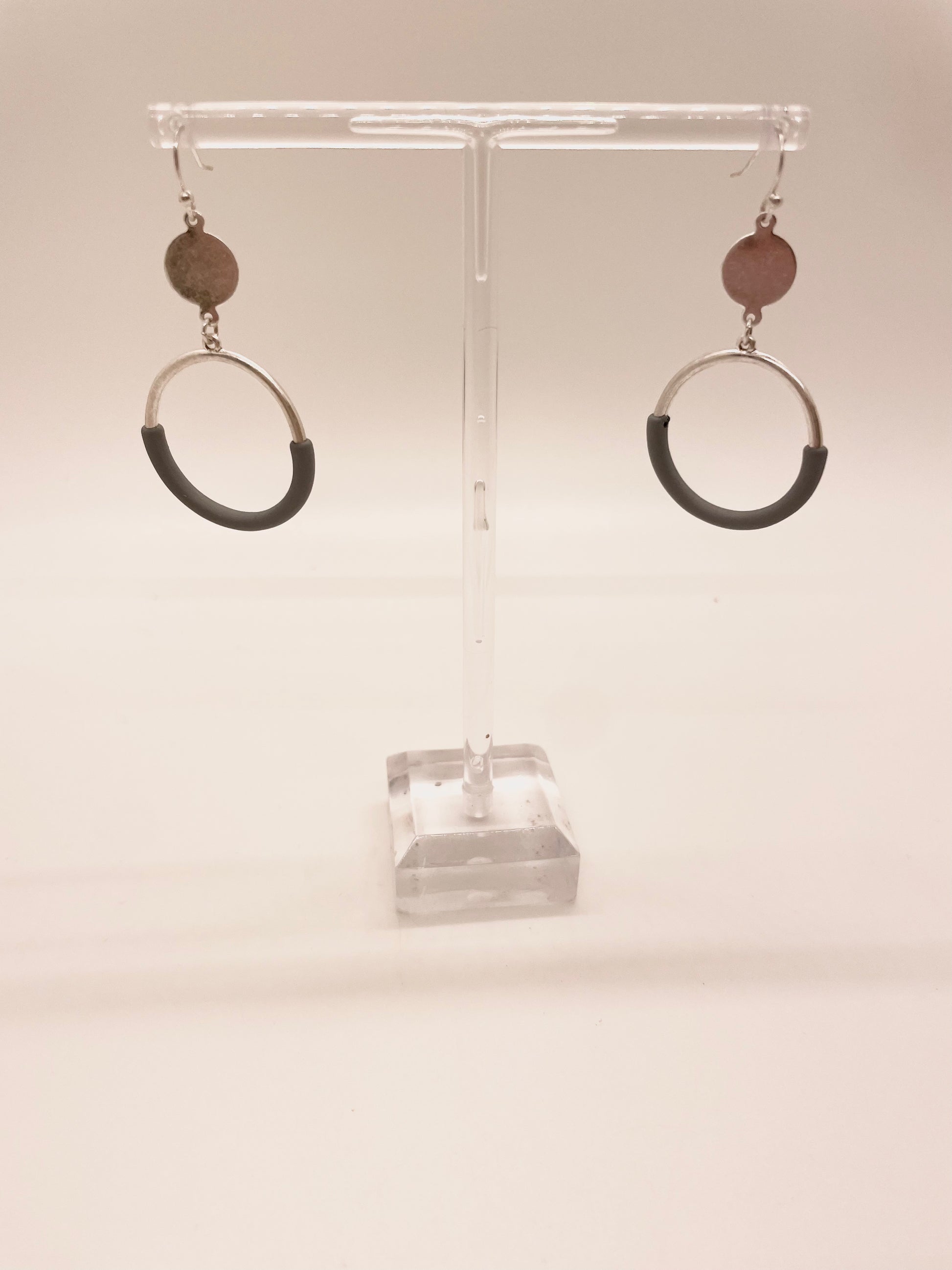 Upgrade your earring game with our stylish Grey & Silver Circle Earrings. Made from high-quality materials, these earrings add a touch of elegance to any outfit. The unique grey and silver design make them the perfect accessory for any occasion. Elevate your look and feel confident with these stunning earrings.