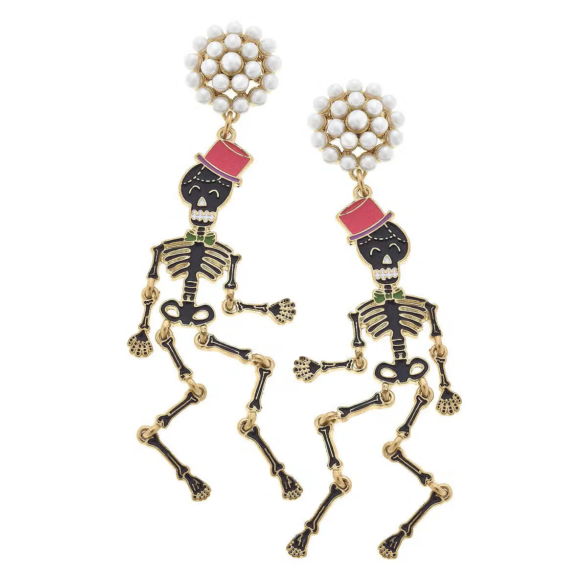 Get the perfect spooky yet cute accessory with our Halloween Skeleton Earrings in black and pink! These drop earrings feature a pearl cluster design that adds a touch of elegance to any Halloween outfit. Add a touch of spookiness to your style with these must-have earrings.