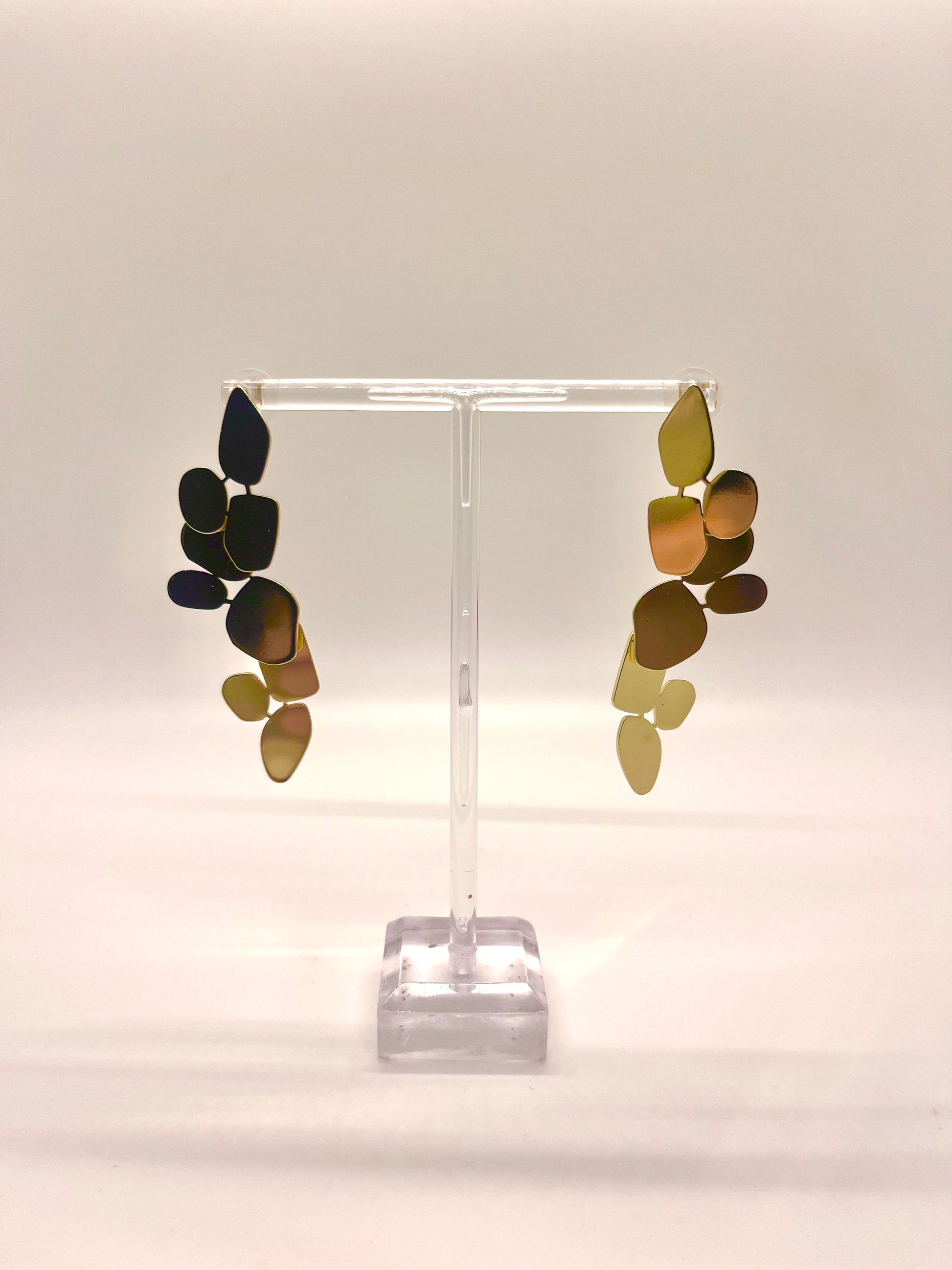 Elevate your style with our Layered Gold Shapes Earrings. These tiered dangle earrings feature elegant organic circle shapes, adding a touch of sophistication to any outfit. Crafted in gold, they're a perfect accessory for any occasion.