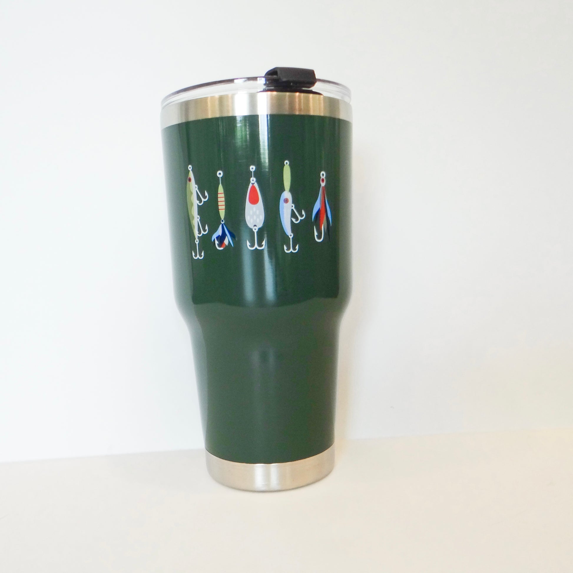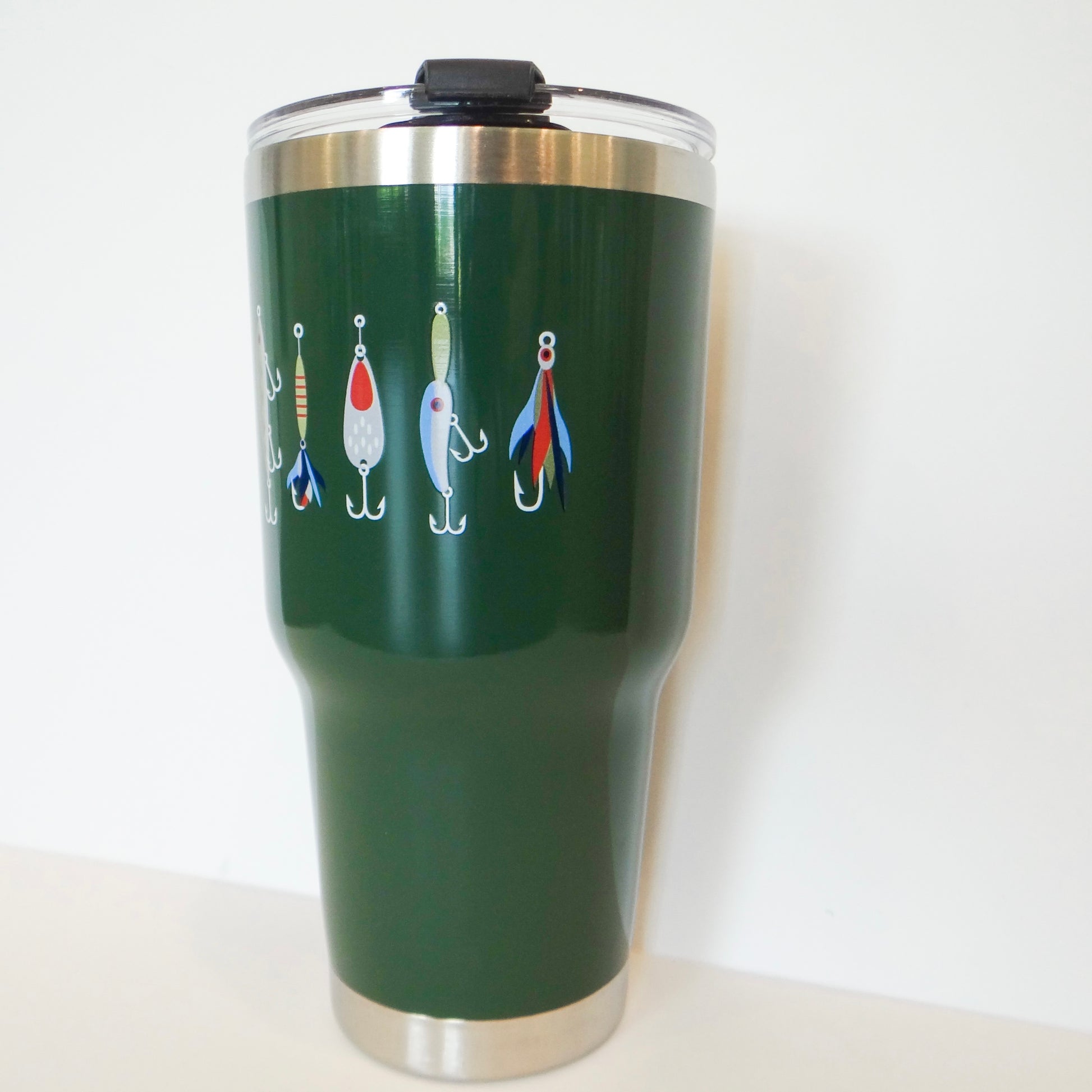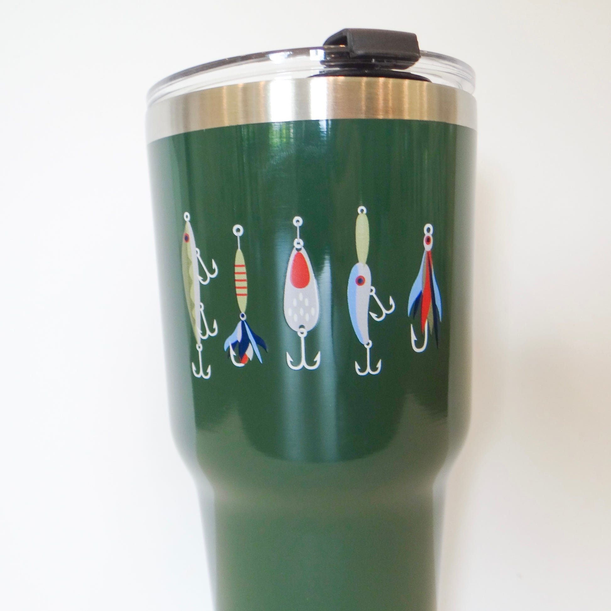 Perfect for the fishing enthusiast in your life, the Lure Me In Tumbler combines practicality with passion. This green tumbler features charming fishing lure designs, making it an ideal Father's Day gift or special present for any outdoorsman. Keep his coffee hot or cold drinks chilled during those early morning fishing trips. A thoughtful way to show you support his favorite hobby.