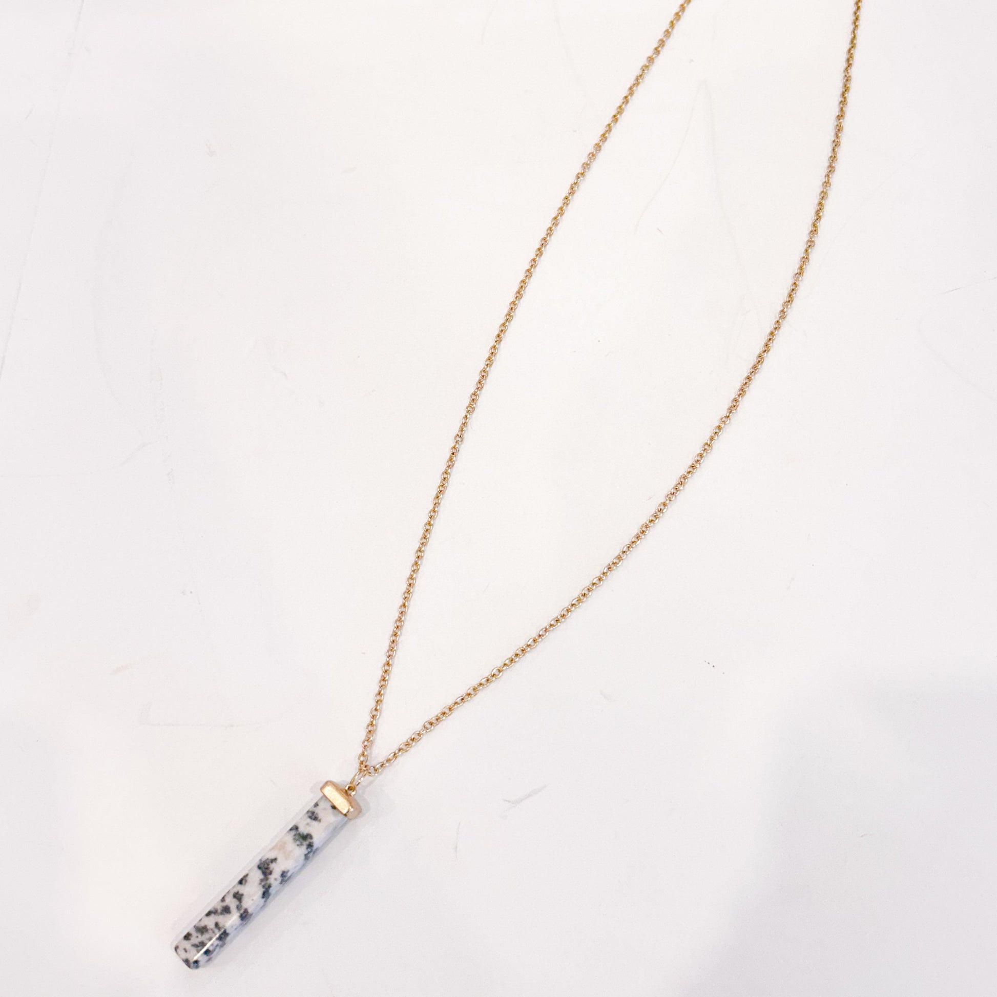 Elevate your everyday style with this striking Marble Geometric Necklace, featuring a substantial marble rectangle pendant suspended from an extended gold chain. The natural veining of the marble creates a unique, one-of-a-kind aesthetic that pairs beautifully with both casual and polished looks. The generous length offers versatile styling options—wear it long for an understated elegance or layer it with shorter pieces for added dimension. A timeless piece that celebrates the beauty of natural stone and modern minimalist design.