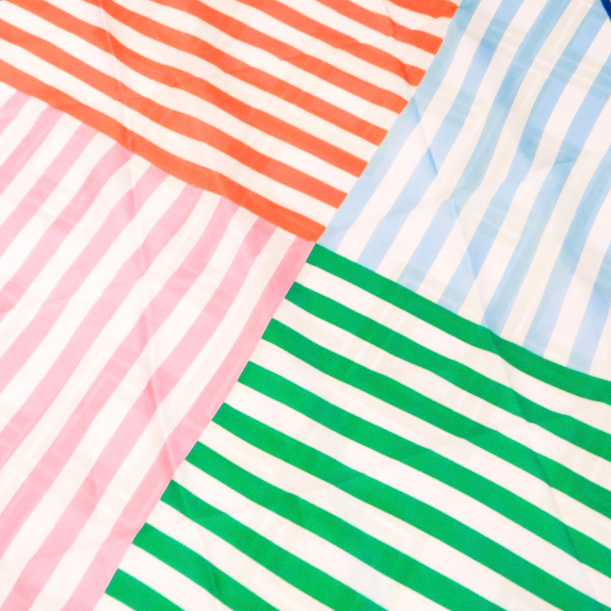Elevate your everyday look with this vibrant multi-color geometric scarf. Featuring bold blocks of pink, green, blue, and orange in a modern pattern, this versatile neck scarf adds instant personality to any outfit. Perfect for layering over dresses, blouses, or sweaters, it transitions seamlessly from casual to polished. Lightweight and easy to style, this geometric piece is a must-have accessory for color lovers.