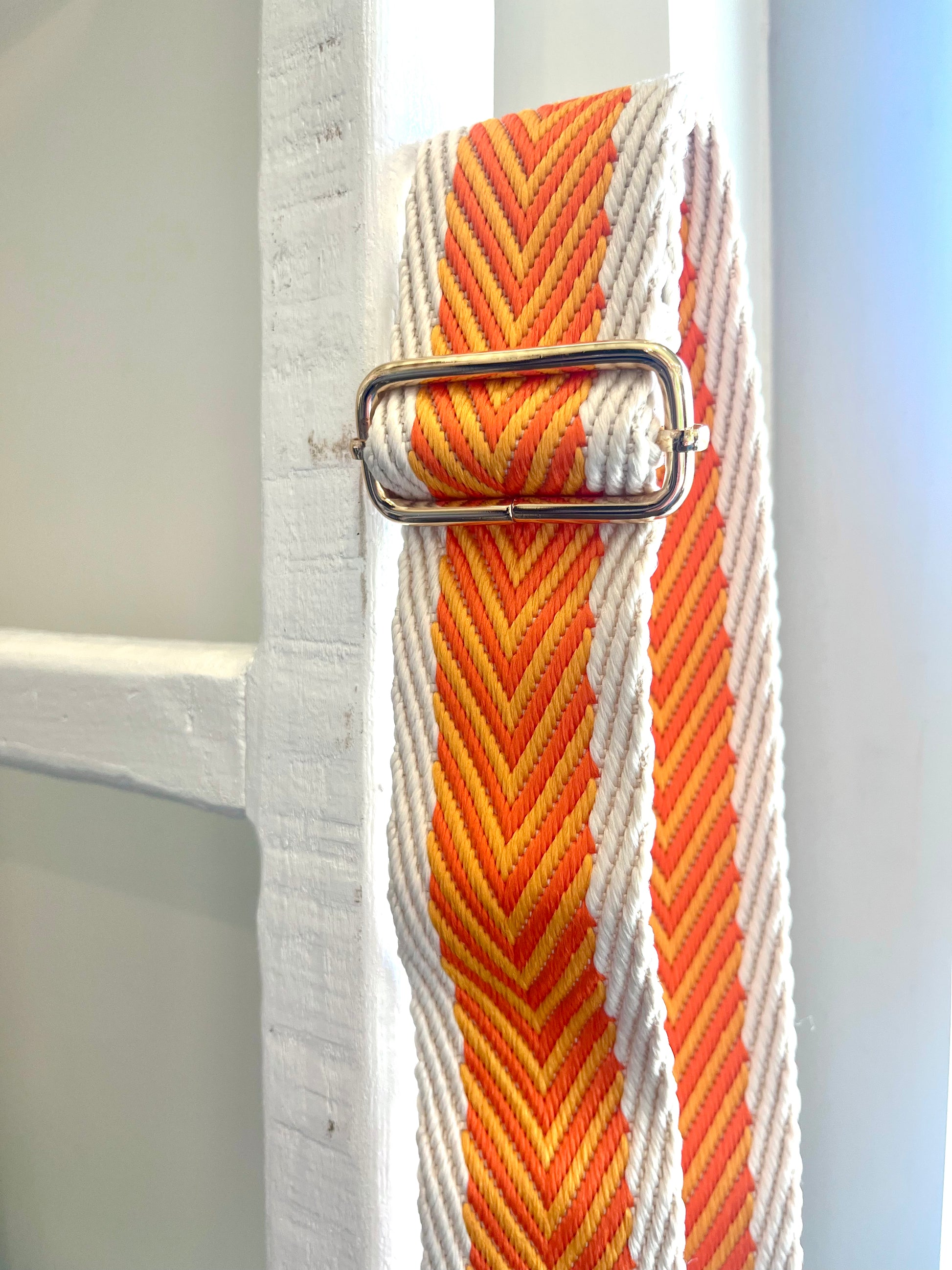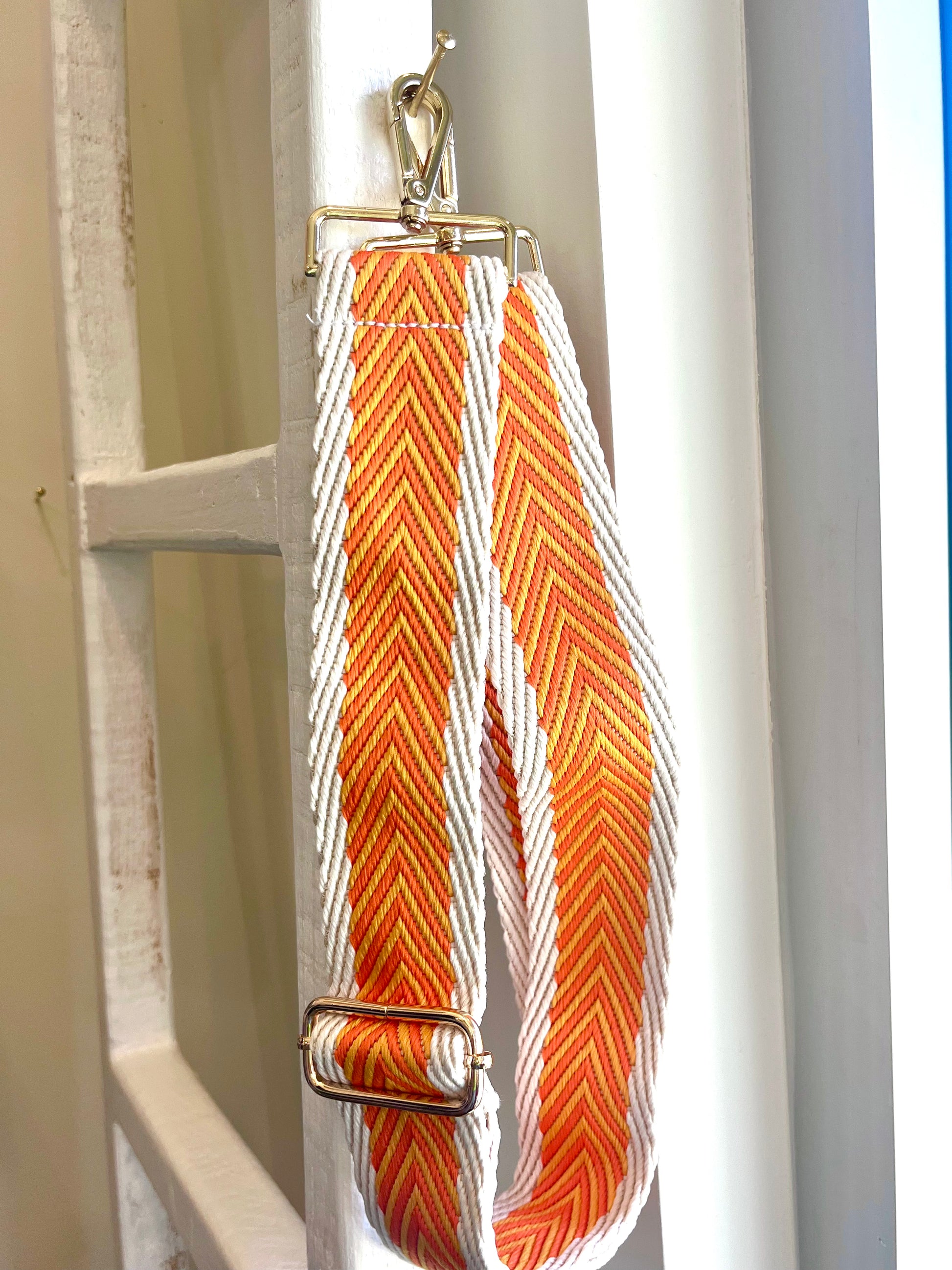 Upgrade your purse game with our Orange Sunrise Purse Strap! Made of soft woven fabric in a chic khaki and two shades of orange, this strap is perfect for both summer adventures and game day. Say goodbye to boring straps and add a touch of cuteness to your outfit.