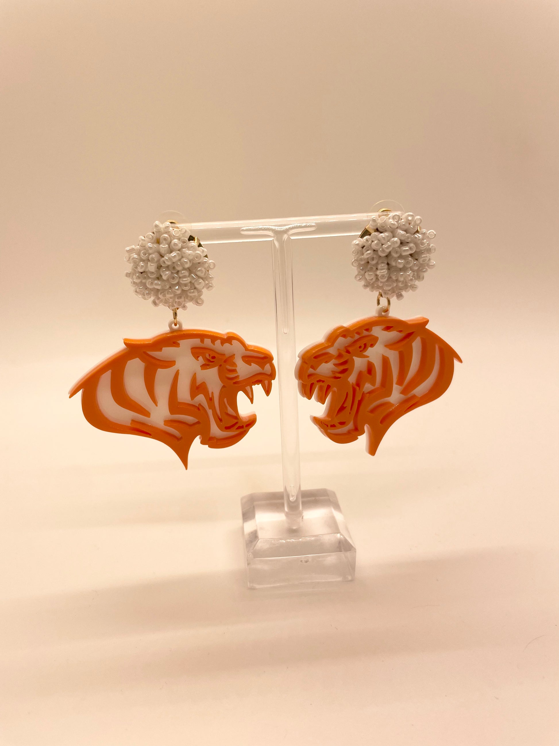 Orange Tiger Drop Earrings with White Beads