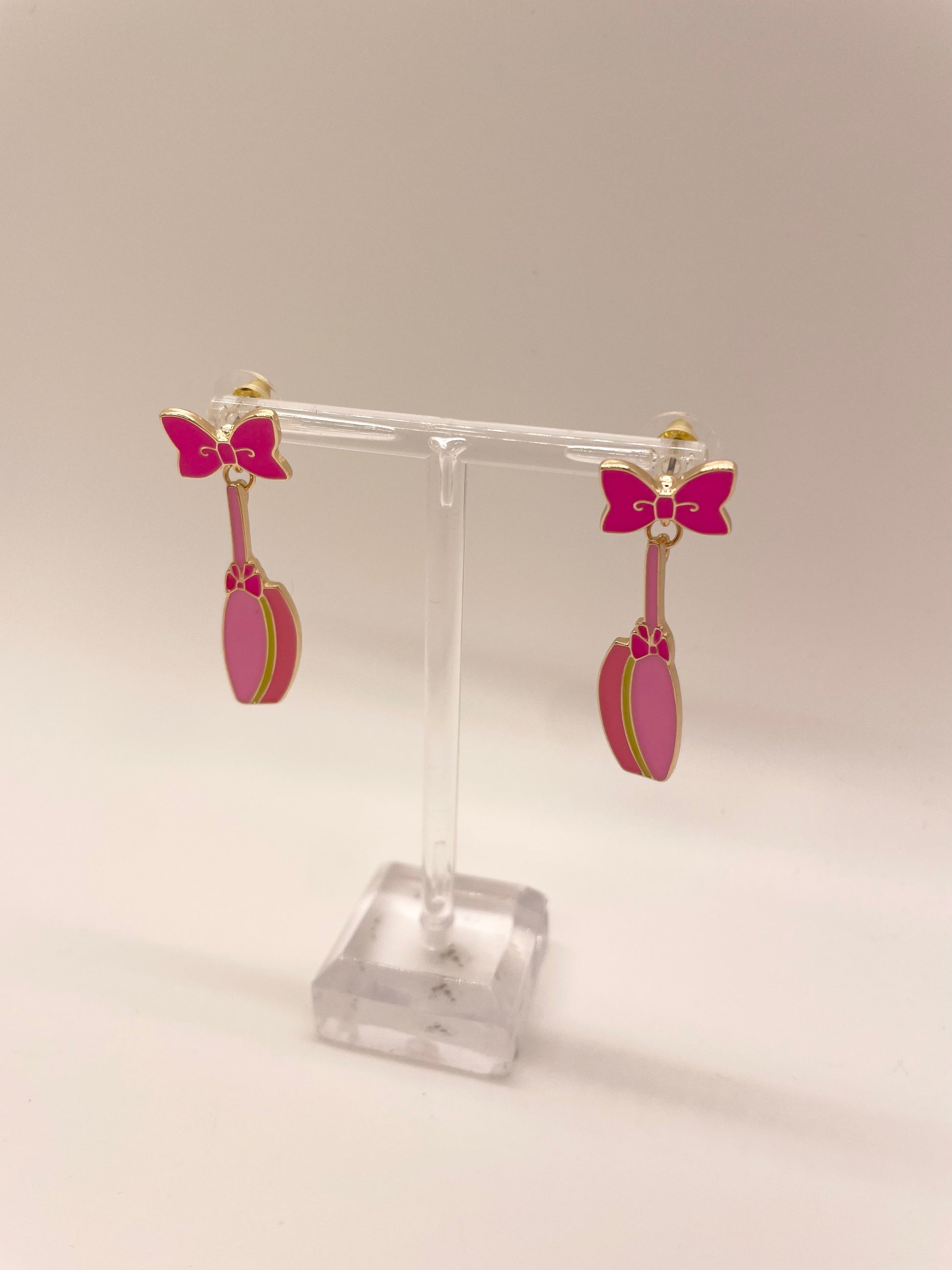 These stylish pink hair bow drop earrings will add the perfect touch of fun and flair to any ensemble! They feature a vibrant and eye-catching pink color, perfect for making a statement.
