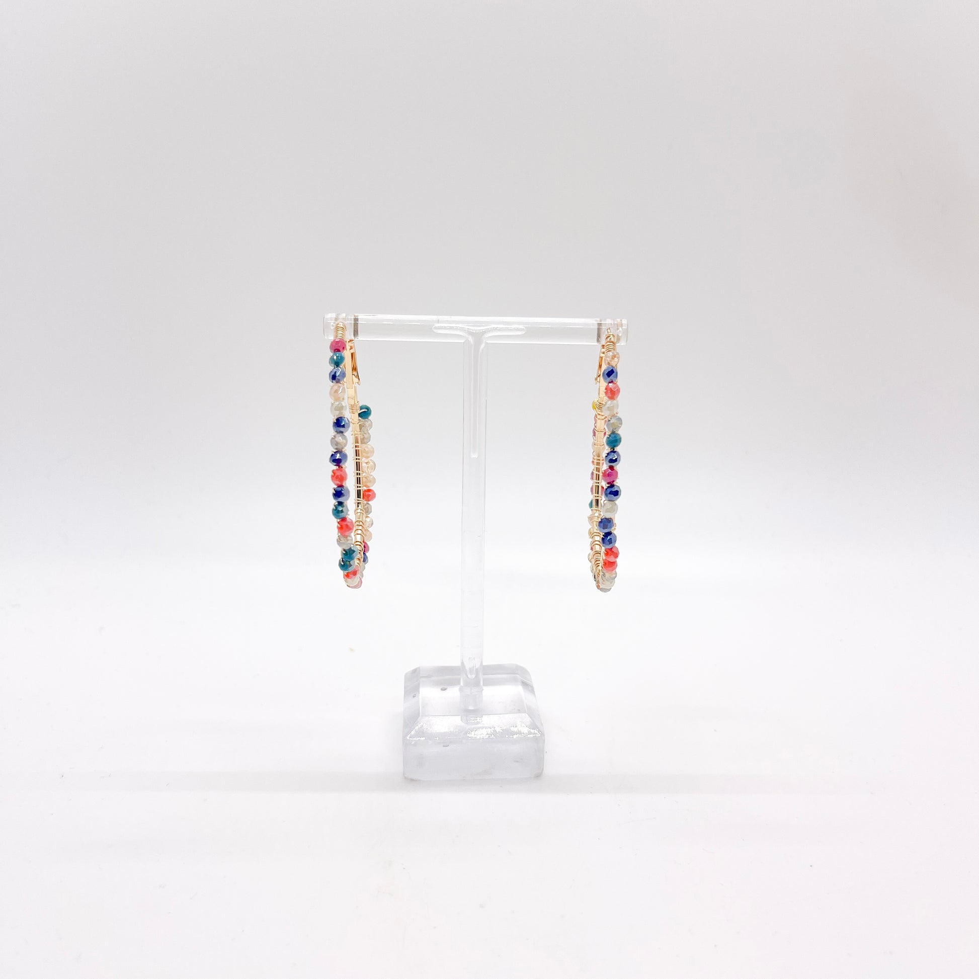 These charming oval-shaped gold earrings bring instant joy to any look. Vibrant beads in playful hues line the elegant frame, creating a delightful pop of color that celebrates your unique style. Perfect for adding personality to everyday outfits or making a statement at special occasions, these versatile earrings remind you that life's best moments deserve a splash of brightness. Lightweight and comfortable for all-day wear.