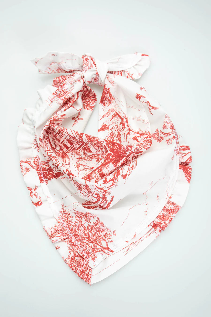 Create effortless looks with our Bandana and Headscarf. This retro-style bandana promises to give you a relaxed yet chic look. Crafted with a cotton blend fabric, it features a classic print with a trendy and cute ruffle trim. You can wear it as a bandana, as a neck scarf, as a headscarf, or fold it and wear it as a headband with a bow-knot on the front.
