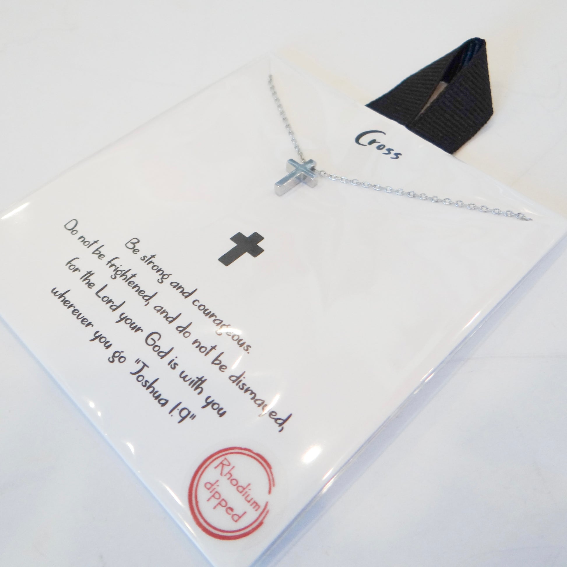 Carry faith close to your heart with this elegant silver cross necklace. Crafted with timeless appeal, this piece serves as a meaningful reminder of strength and courage. Perfect for personal wear or as a thoughtful gift, it arrives beautifully presented on an inspirational card featuring Joshua 1:9—a verse of encouragement and empowerment. Whether you're seeking a spiritual keepsake or looking to uplift someone special, this necklace combines graceful design with heartfelt purpose.