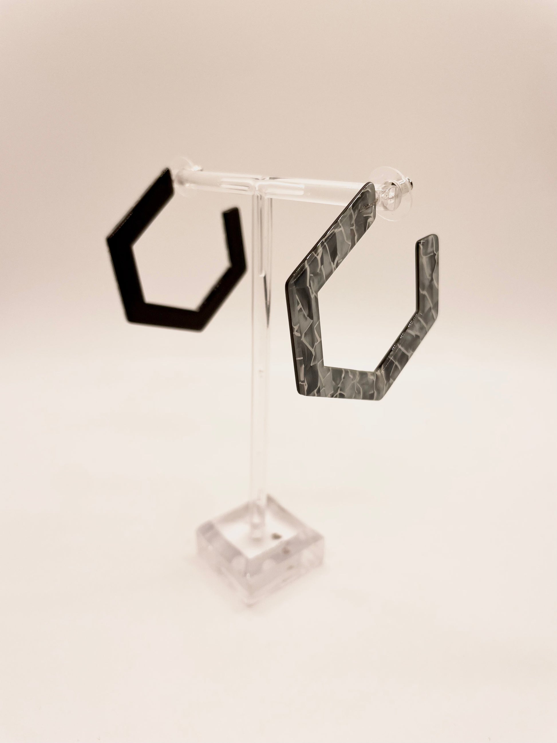 Impress with these Silver & Grey Opaque Hoops. Stylish and versatile, these hoops are perfect for any outfit. Made with high-quality silver and grey materials, these hoops will add a touch of elegance to your look. Upgrade your jewelry collection with these stunning hoops.
