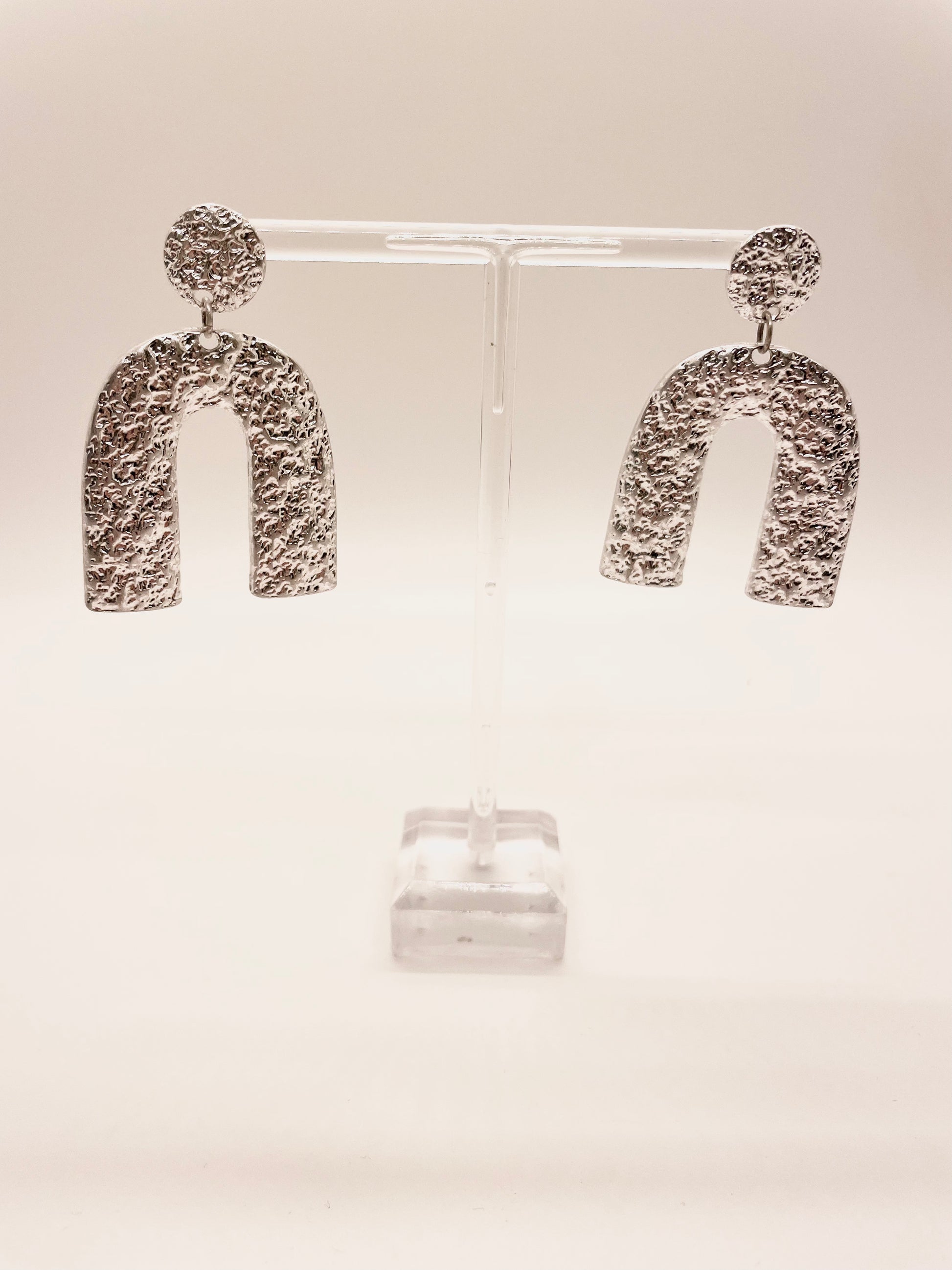 Silver Hammered U Earrings