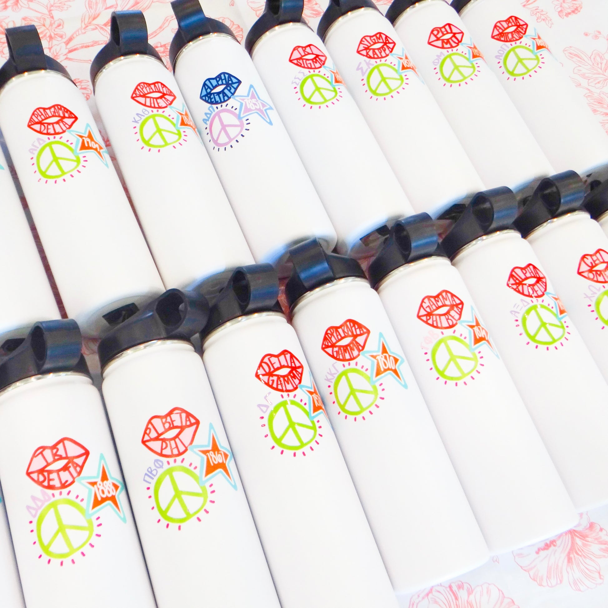 Show up to class in style with this sassy Sorority Water Bottle! Keep your drinks cold for up to 24 hours and hot for up to 12 with this leakproof and cupholder-friendly vacuum-insulated bottle.
