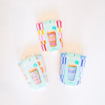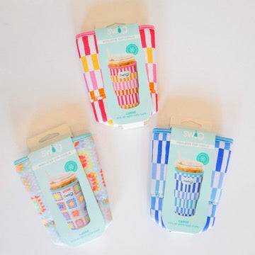 The Insulated Coolies stop condensation and keep drinks cold for 2+ hours.  The lightweight Iced Drink Cup Coolie can be carried anywhere and stores away flat, making it a carpool to office must-have!