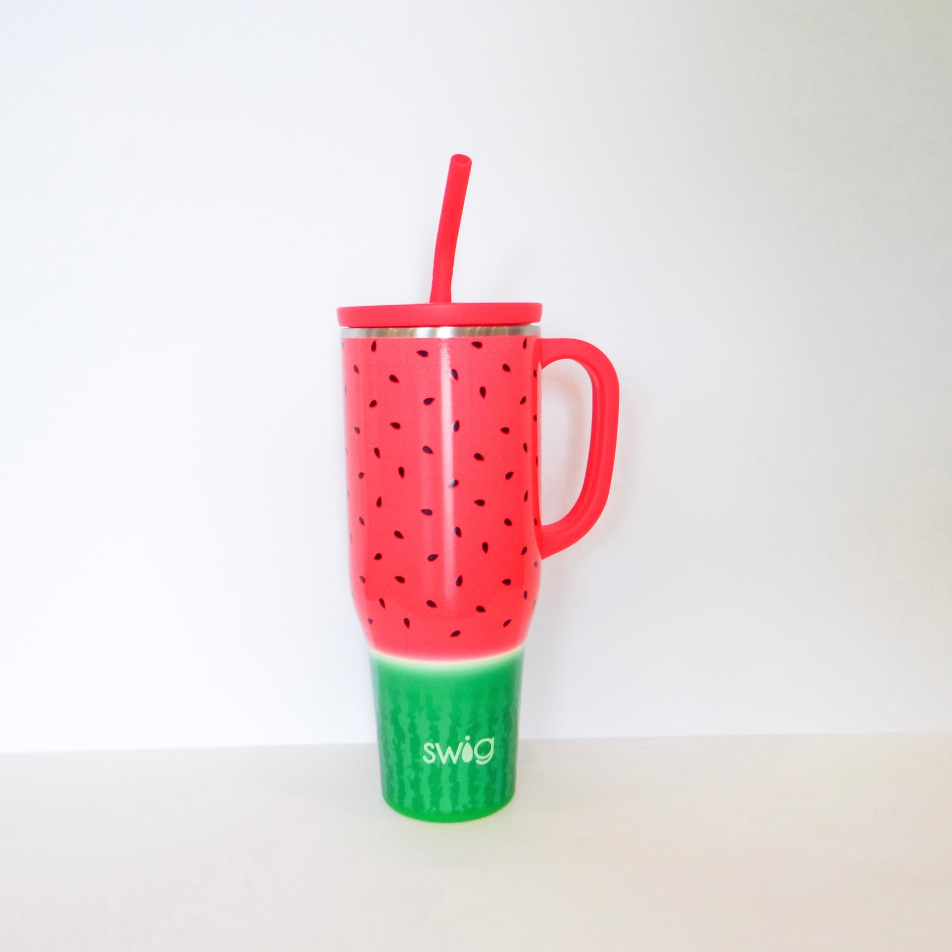 Hydrating has never been easier with our 40oz Insulated Mega Mug! A cup holder-friendly frame, a comfort-grip handle, and a plastic straw with a silicone flexi-tip all come together to create your new favorite Swig.