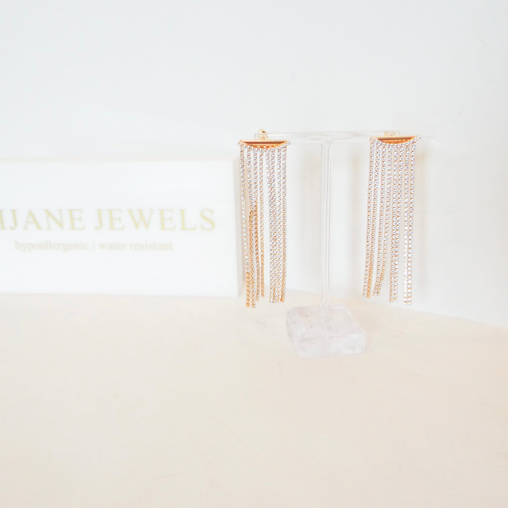 Elevate your evening look with the Tallulah Earrings from HJane Jewels. These stunning rhinestone dangle earrings catch the light beautifully, adding sparkle and sophistication to any dressy occasion. Featuring secure post backs for comfortable all-day wear, they're the perfect finishing touch for weddings, galas, or special celebrations. Let these radiant beauties boost your confidence and help you shine.