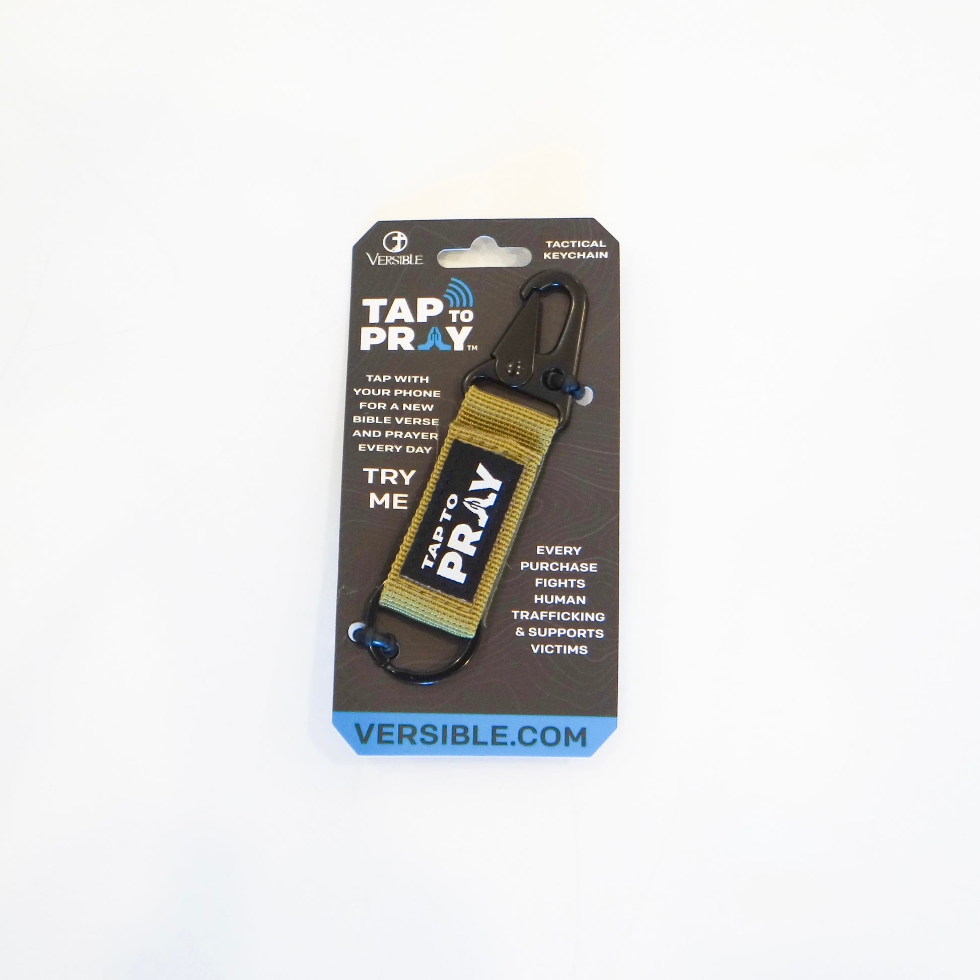 Versible® is excited to introduce our new line of Tap To Pray Tactical Keychains. No app required, just tap the patch with your smartphone to receive a new Bible verse and prayer every day. Our tactical keychains feature a black metal carabiner clip, hook & loop strap, and a black key ring. These multi-purpose keychains are versatile, giving you many options for attaching keys and/or attaching the keychain to a bag, belt-loop, or belt.