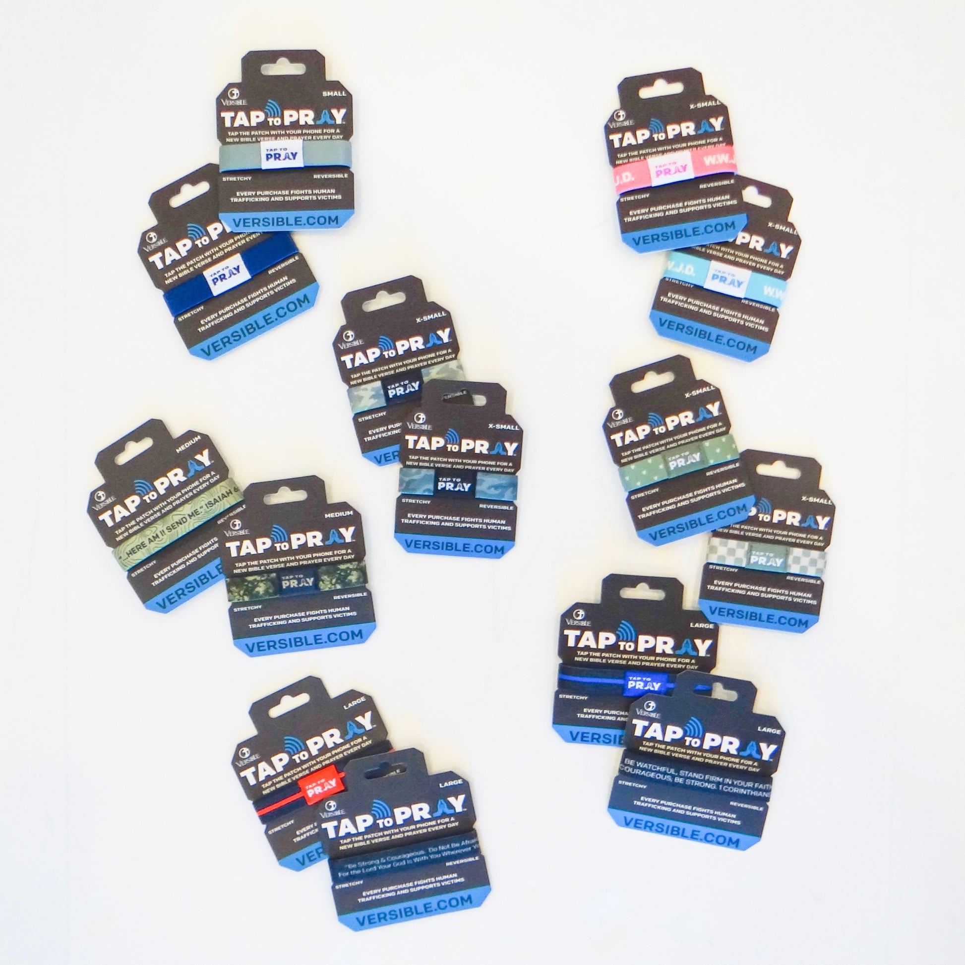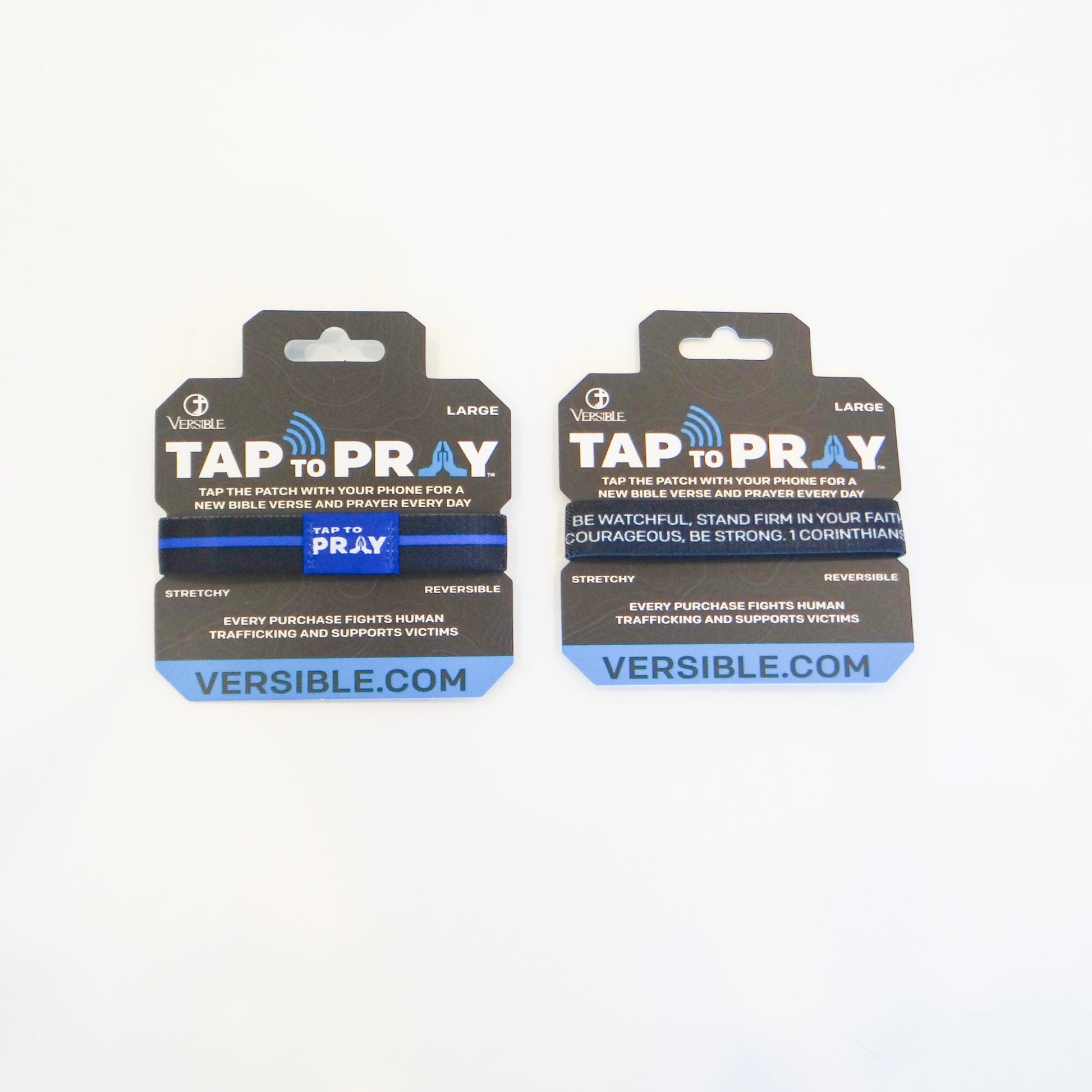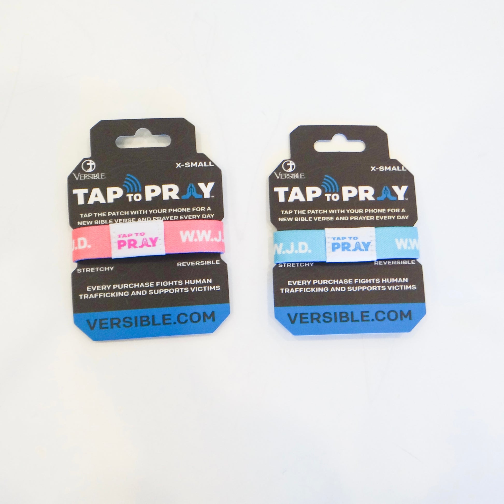 No app required, just tap the patch with your smartphone to receive a new bible verse and prayer every day. There is also the ability for you to receive a new verse and prayer anytime you want, simply hit the "New Verse" link on the bottom of the page! Tap To Pray works with most smartphones. The wristbands are soft, stretchy, reversible and waterproof! With two reversible patterns on each wristband and multiple sizes to choose from, it's easy to find a Tap To Pray wristband that's right for you!