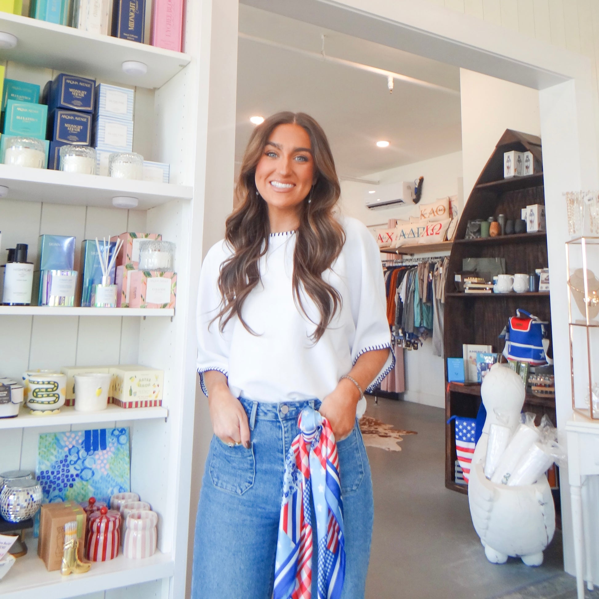 The Stitch Top is your go-to piece for effortless warm-weather style. This relaxed-fit, slightly cropped short-sleeve shirt features charming navy blue stitching details along the collar and sleeves, adding a polished touch without the fuss. Perfect for spring and summer, it's designed to slip on and go—whether you're heading to brunch, running errands, or enjoying a casual day out. The comfortable, laid-back silhouette pairs beautifully with everything in your closet, making it a versatile staple you'll reach for again and again.