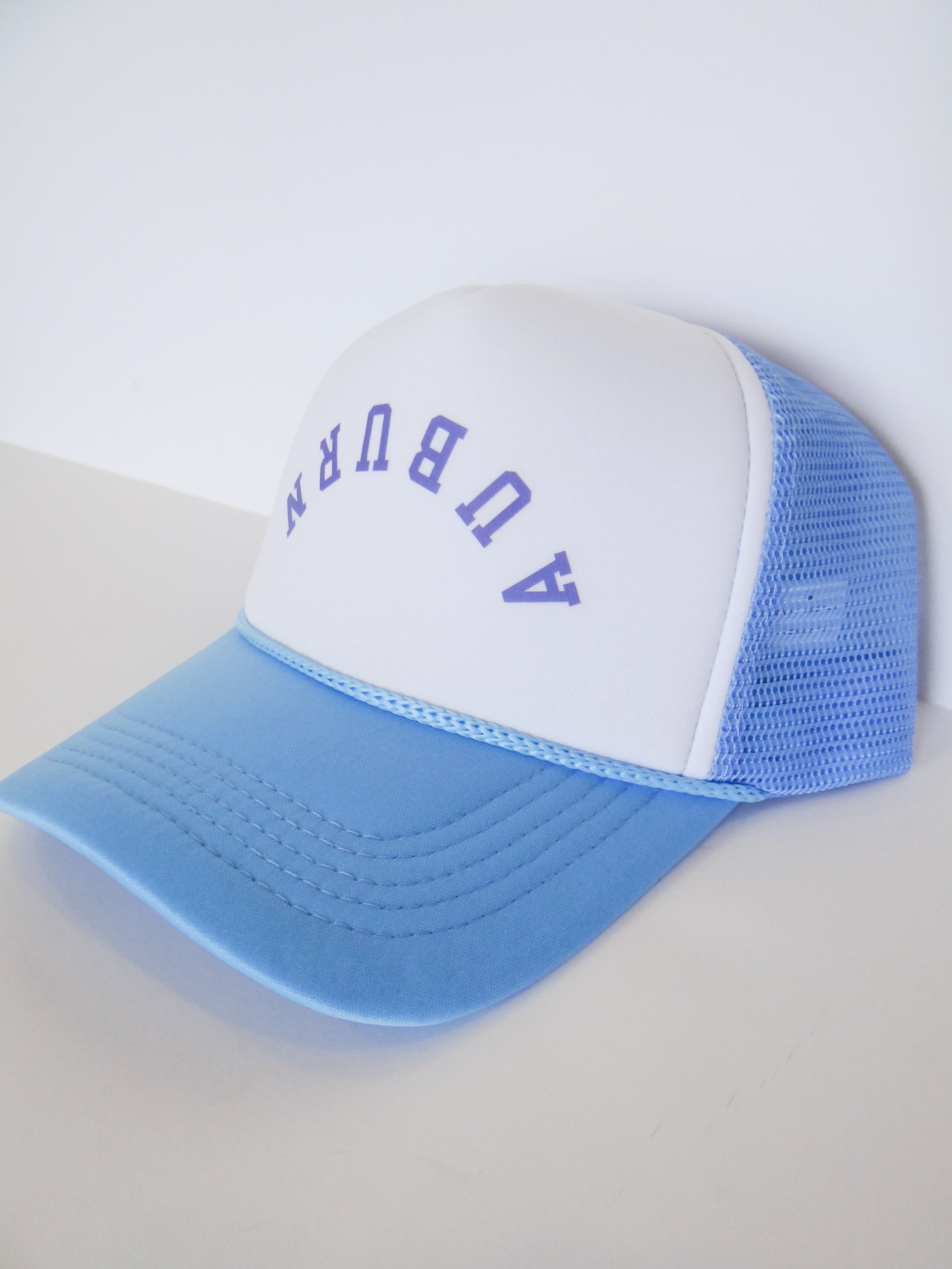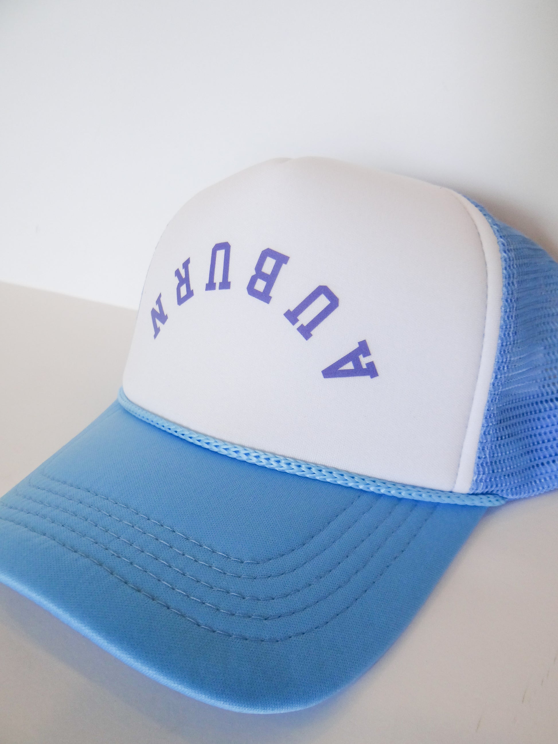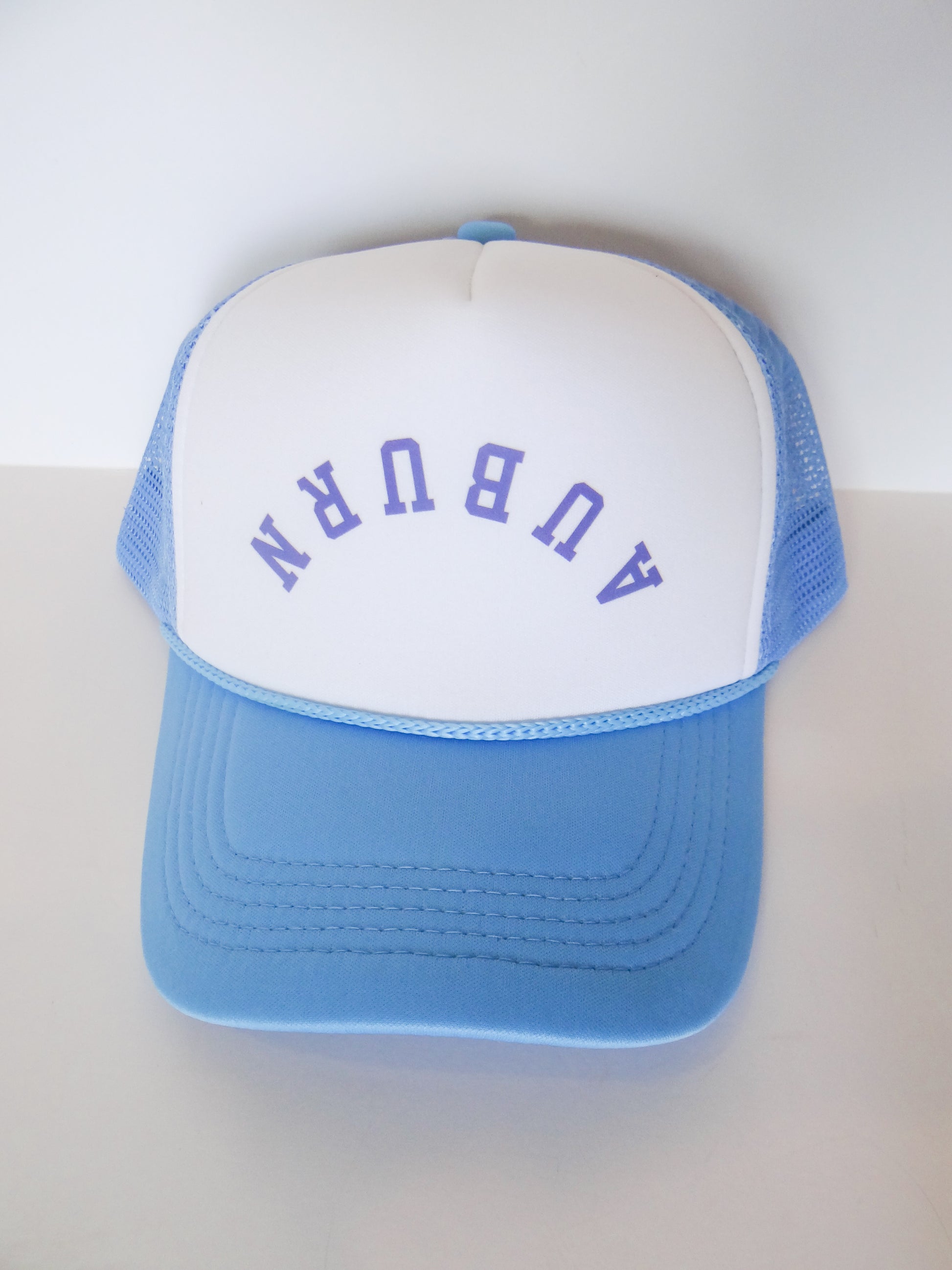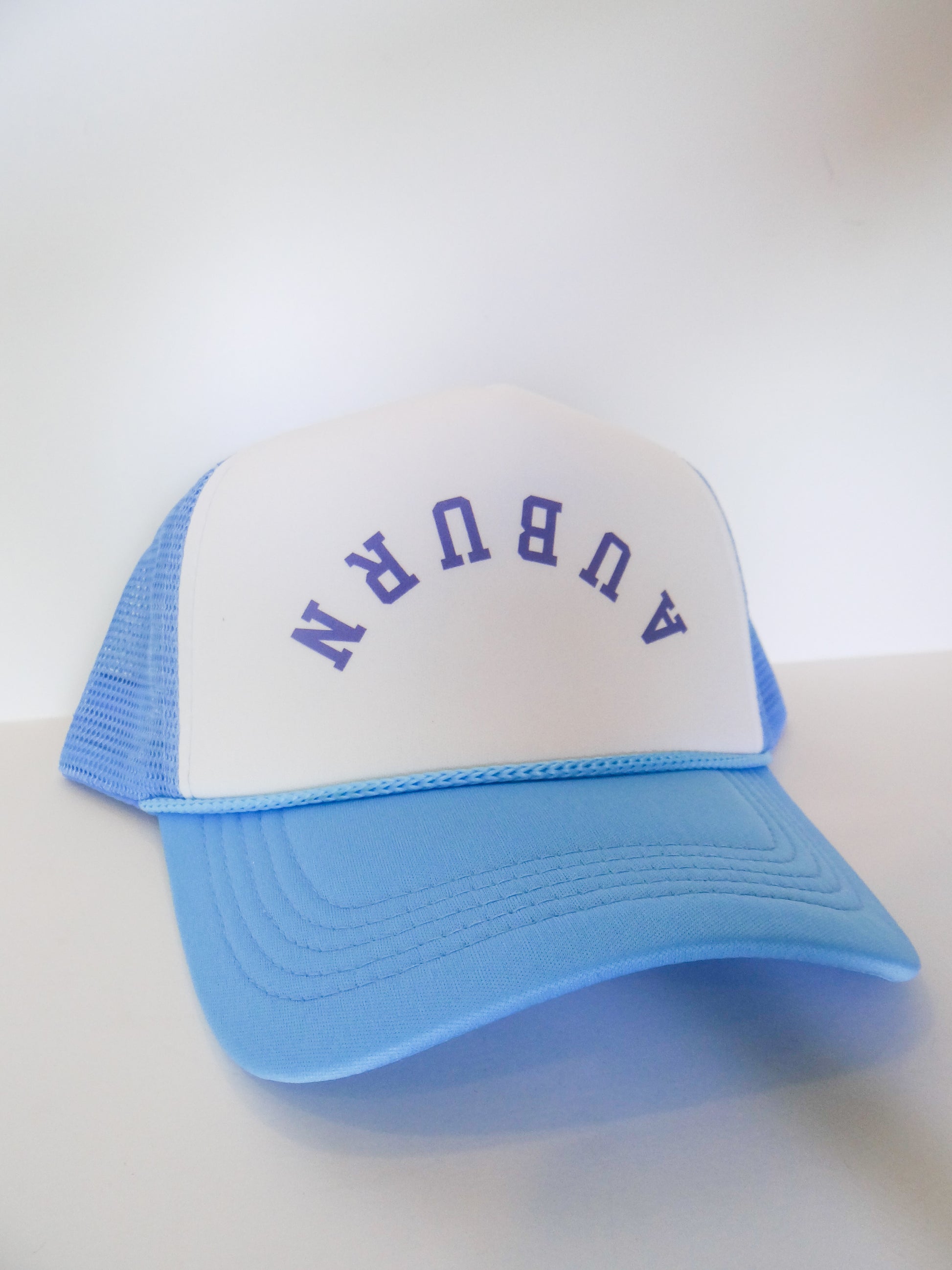 Support your favorite team in style with our Upside Down Auburn Trucker Hat. Made for the trendy Auburn fan, this trucker hat features the iconic Auburn written upside down. Stay cool and stylish at the game or around town. War Eagle!