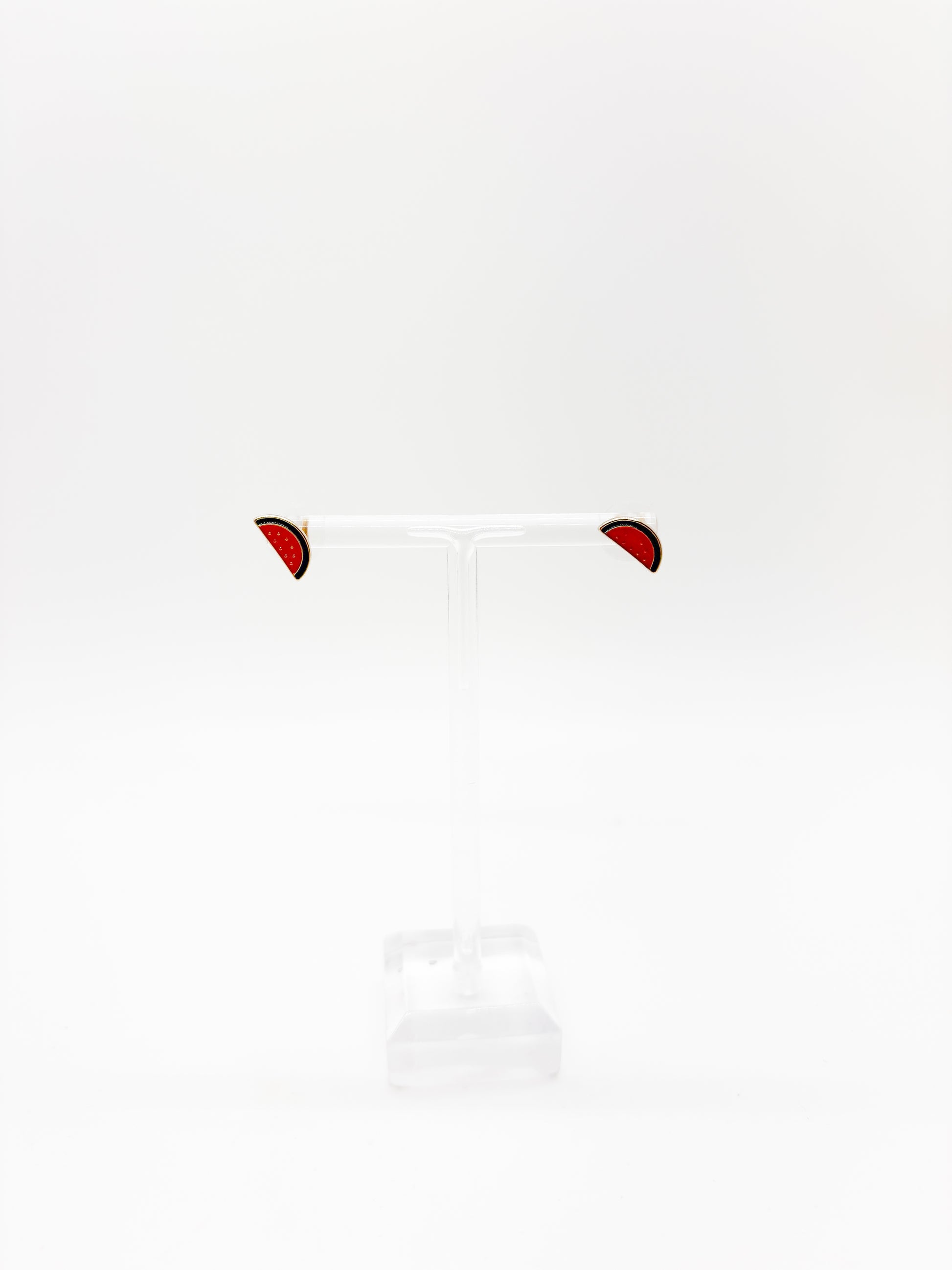 Brighten your look with these charming watermelon studs that bring a playful pop of color to any outfit. Featuring vibrant red and green enamel details with a sweet seed design, these lightweight earrings are perfect for summer vibes or year-round fun. The secure stud backs keep them comfortably in place all day long. Whether you're dressing up for a special occasion or adding a cheerful touch to your everyday style, these fruity studs are sure to make you smile. A delightful accessory that celebrates your unique personality and love of bold, whimsical jewelry.