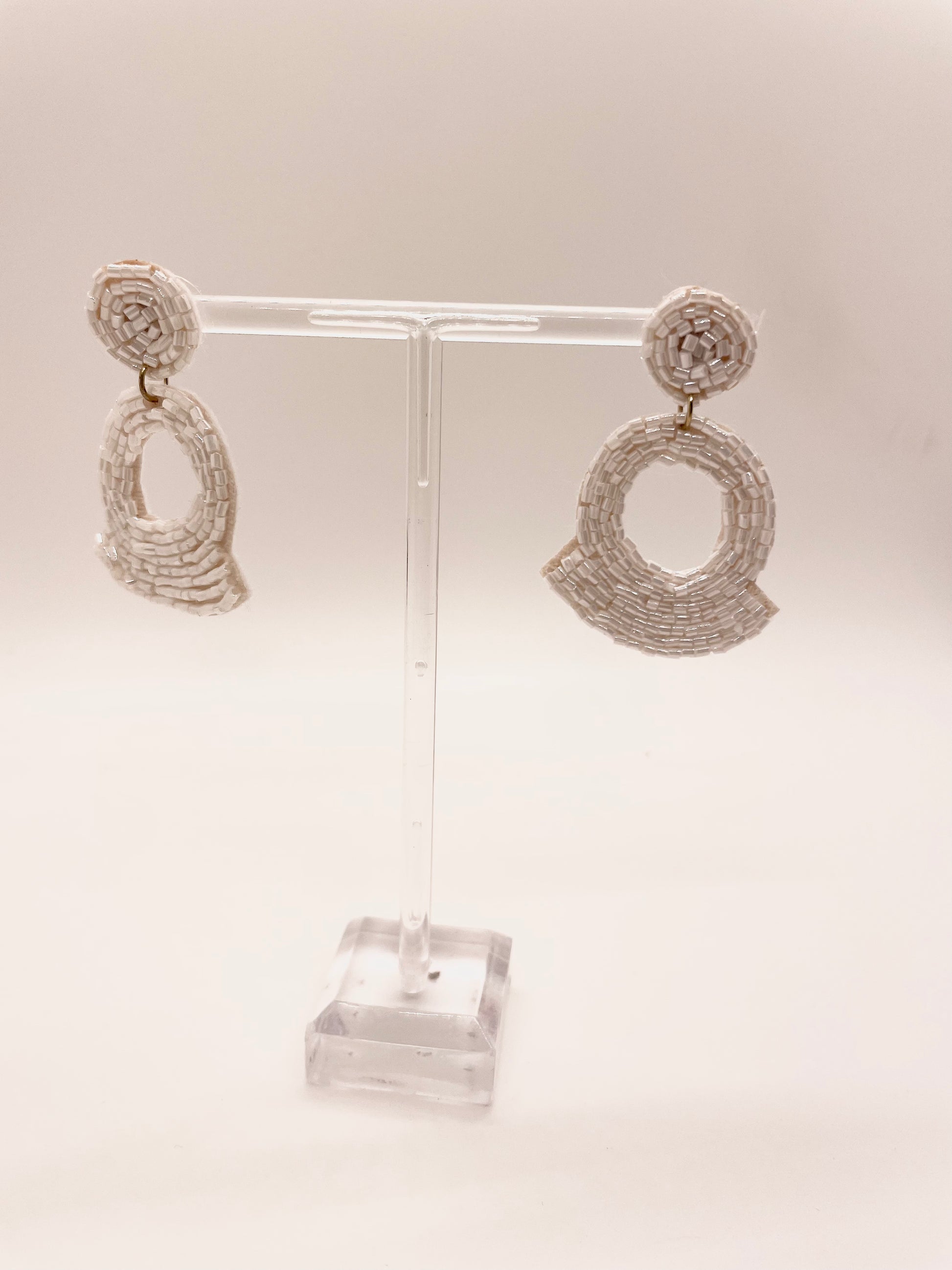 These White Beaded Circle Drop Earrings add a touch of elegance to any outfit. Made with white beads in a circular shape, they are lightweight and easy to wear. Perfect for both formal and casual occasions, these earrings are a must-have accessory for any jewelry collection.